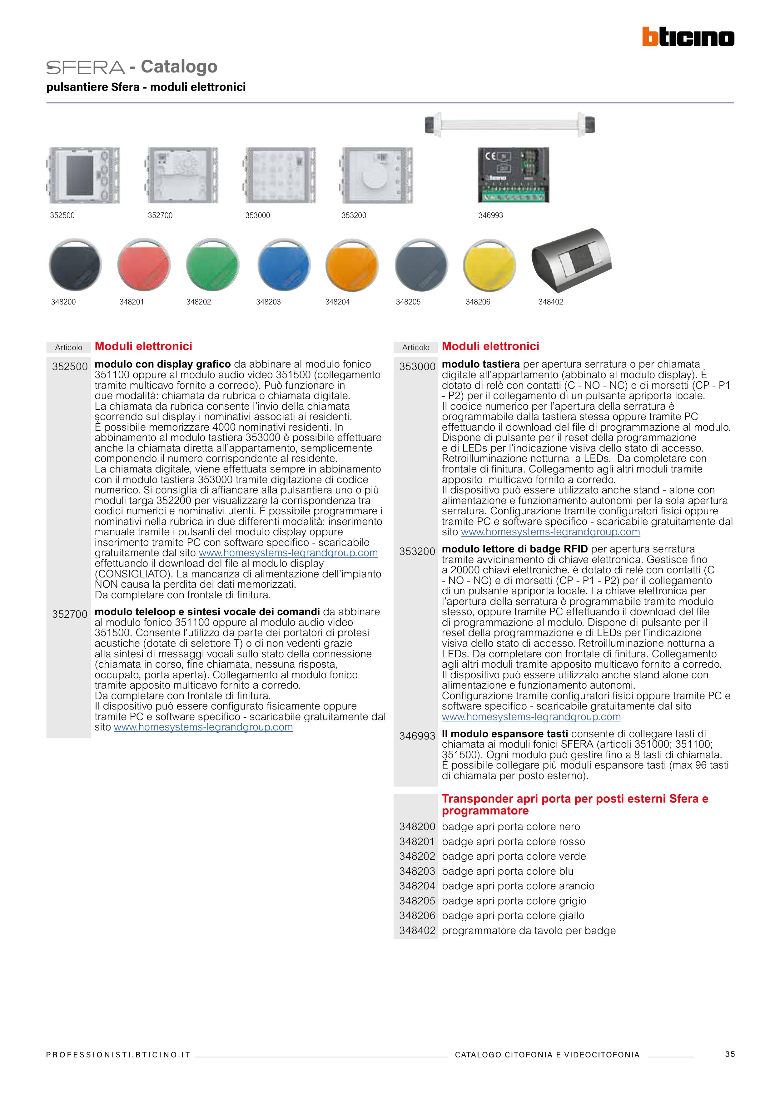 351500). Ogni modulo può gestire fino a 8 tasti di chiamata.