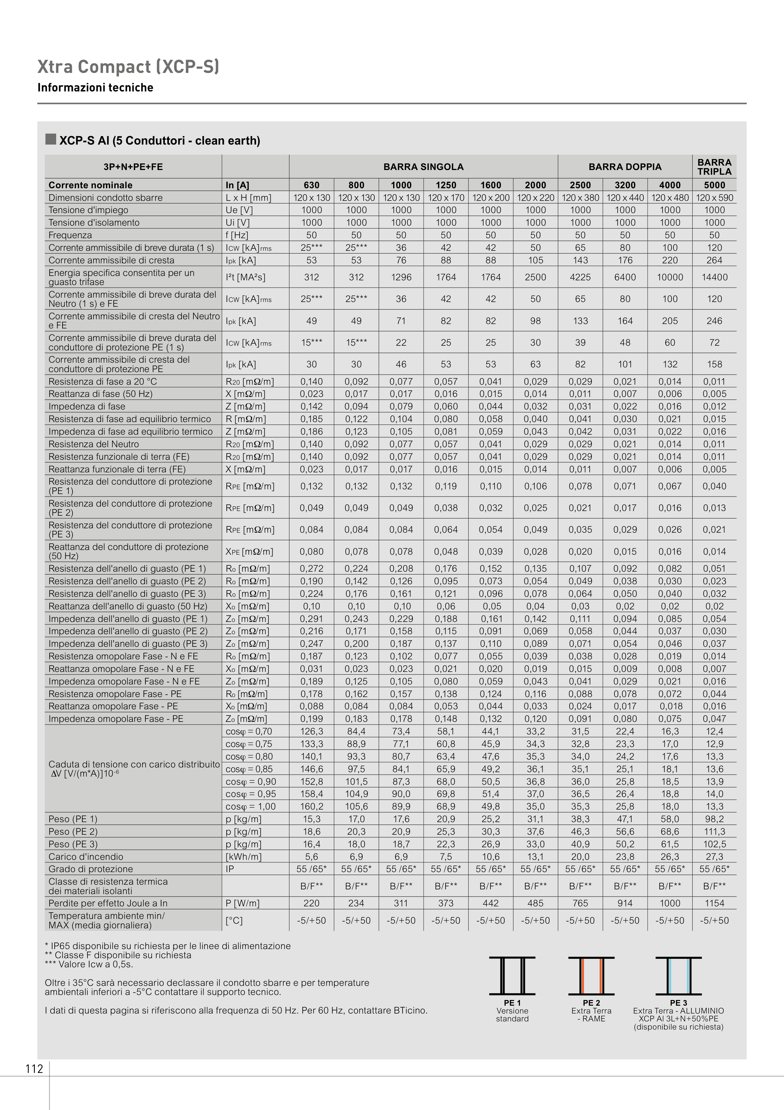 Oltre i 35°C sarà necessario declassare il condotto sbarre e per temperature
