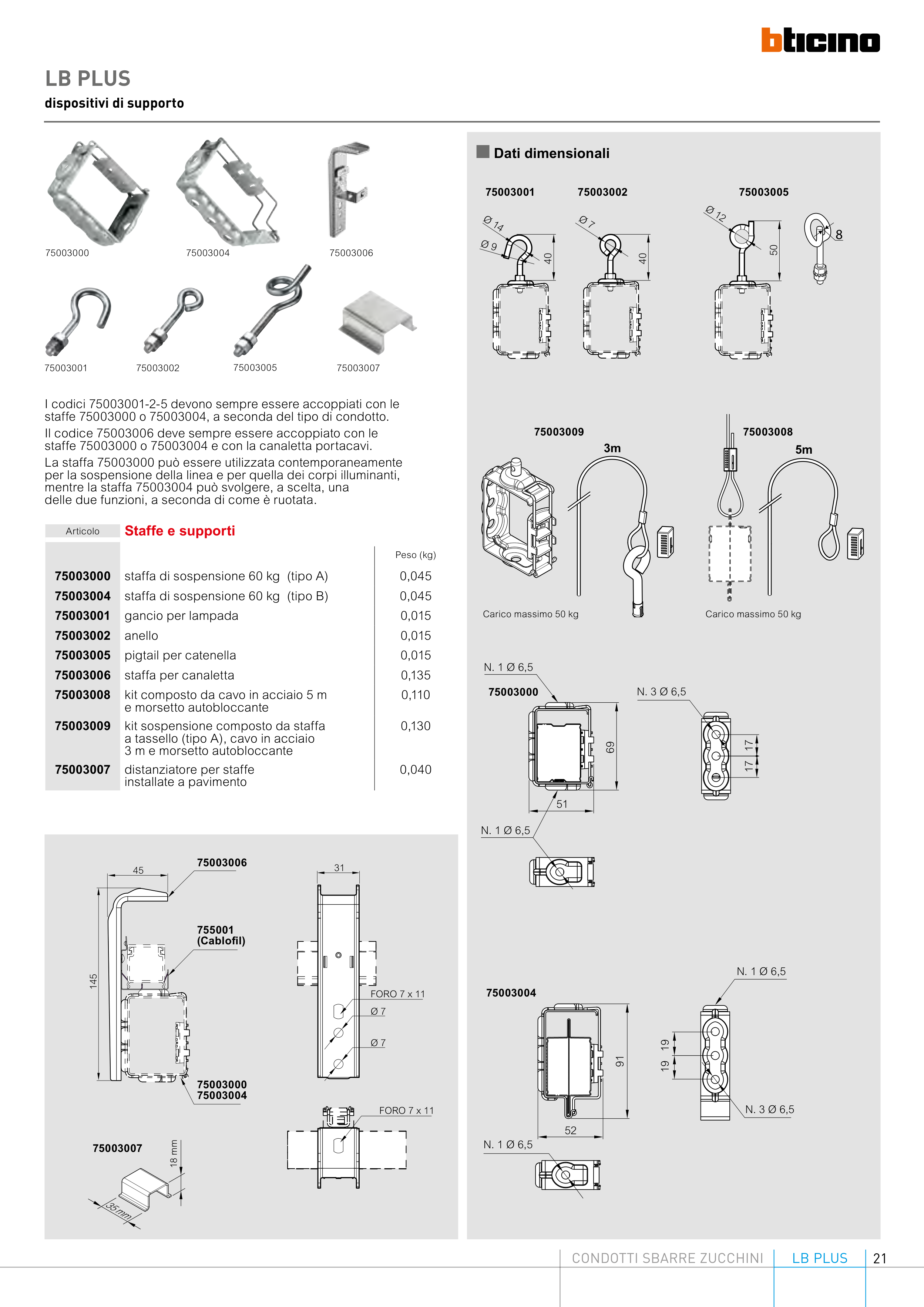 staffa di sospensione 60 kg (tipo B)