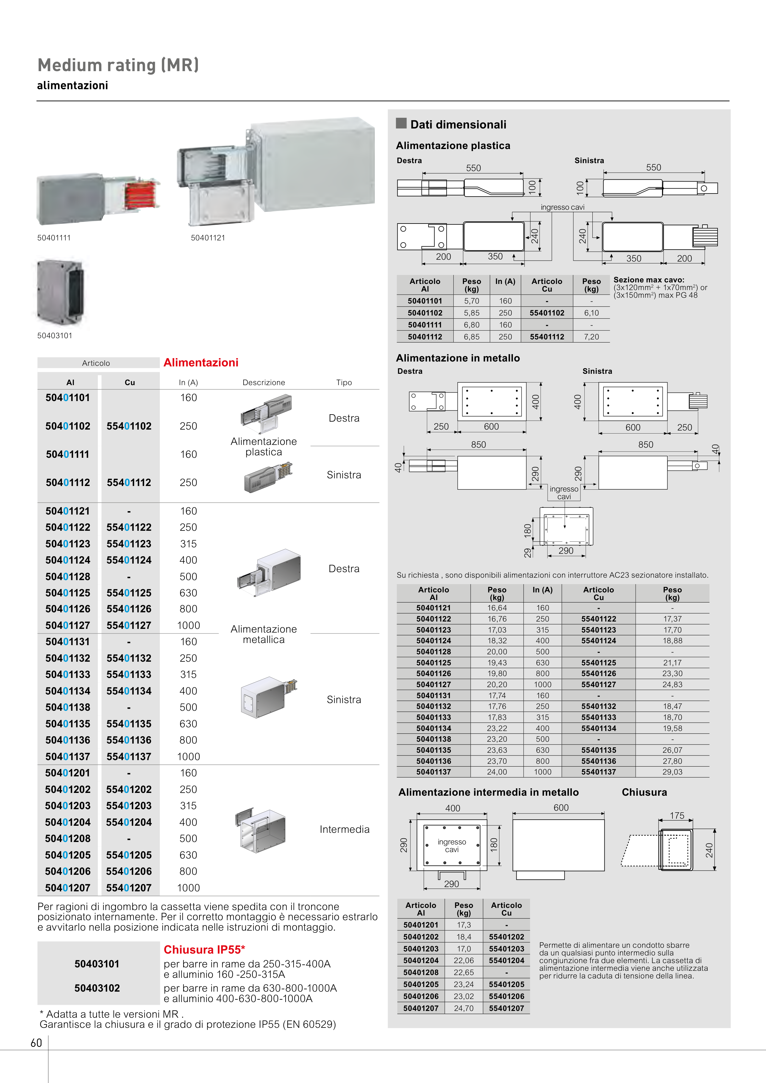 e alluminio 400-630-800-1000A
