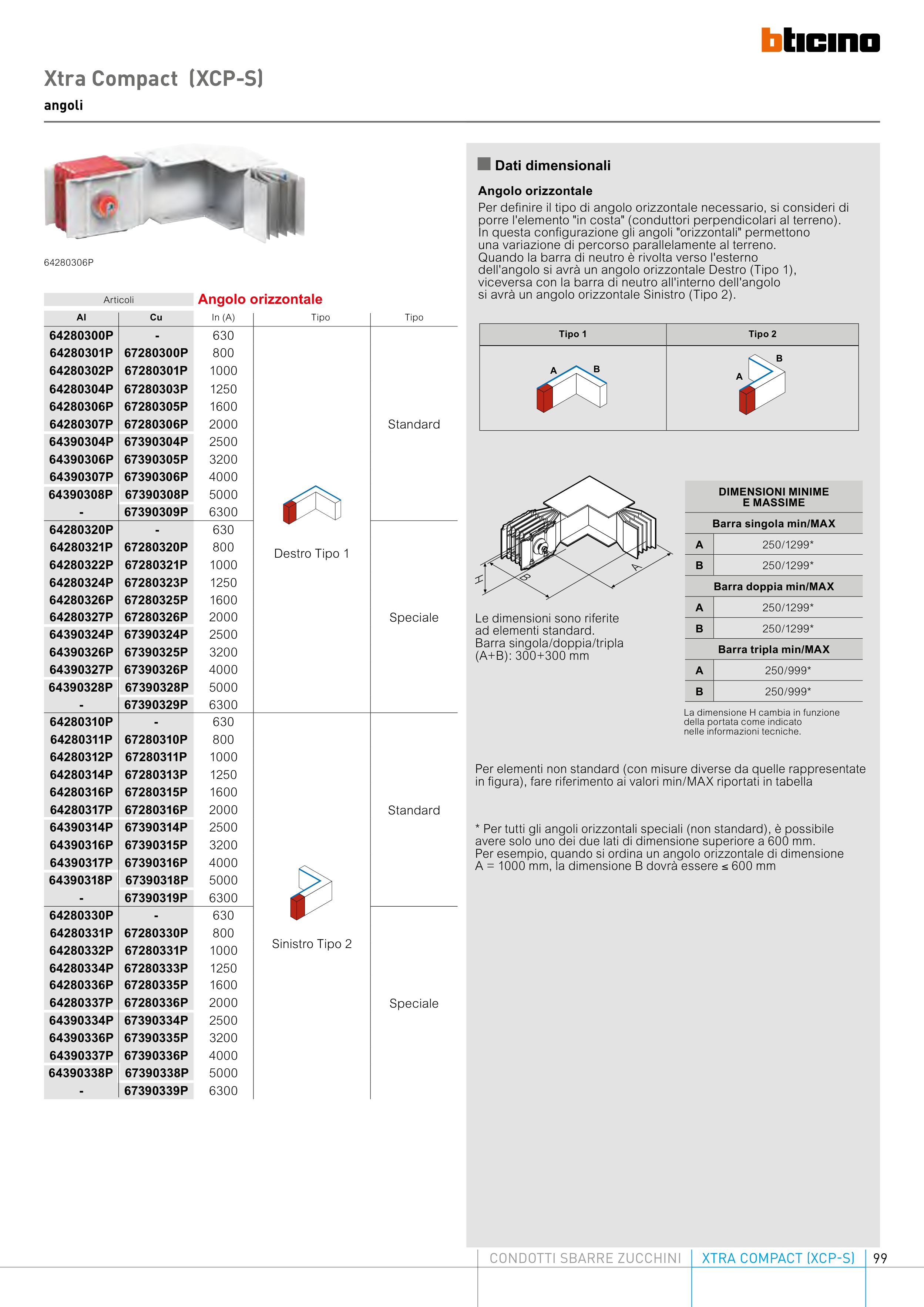 * Per tutti gli angoli orizzontali speciali (non standard), è possibile
