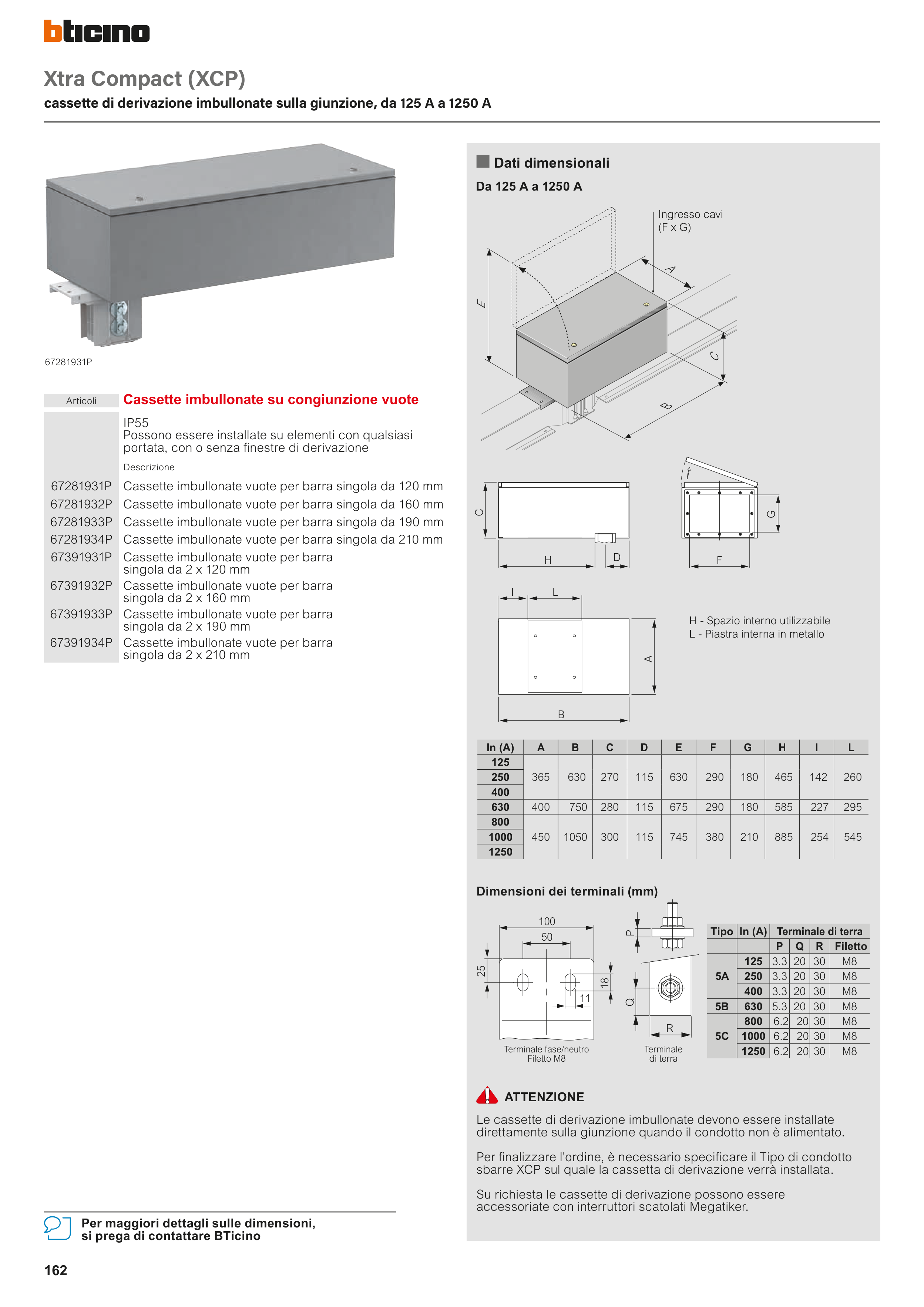 cassette di derivazione imbullonate sulla giunzione, da 125 A a 1250 A