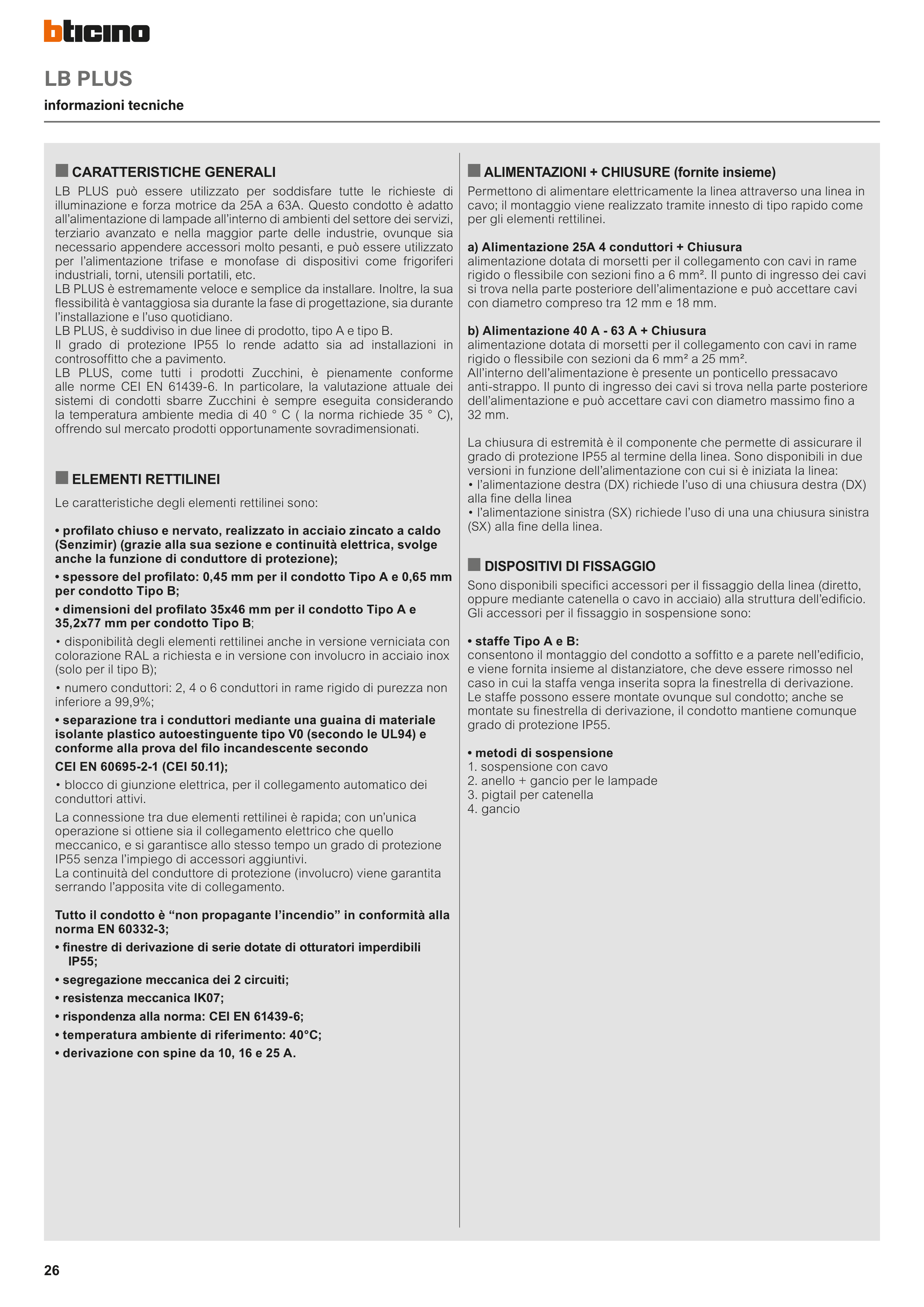 illuminazione e forza motrice da 25A a 63A. Questo condotto è adatto