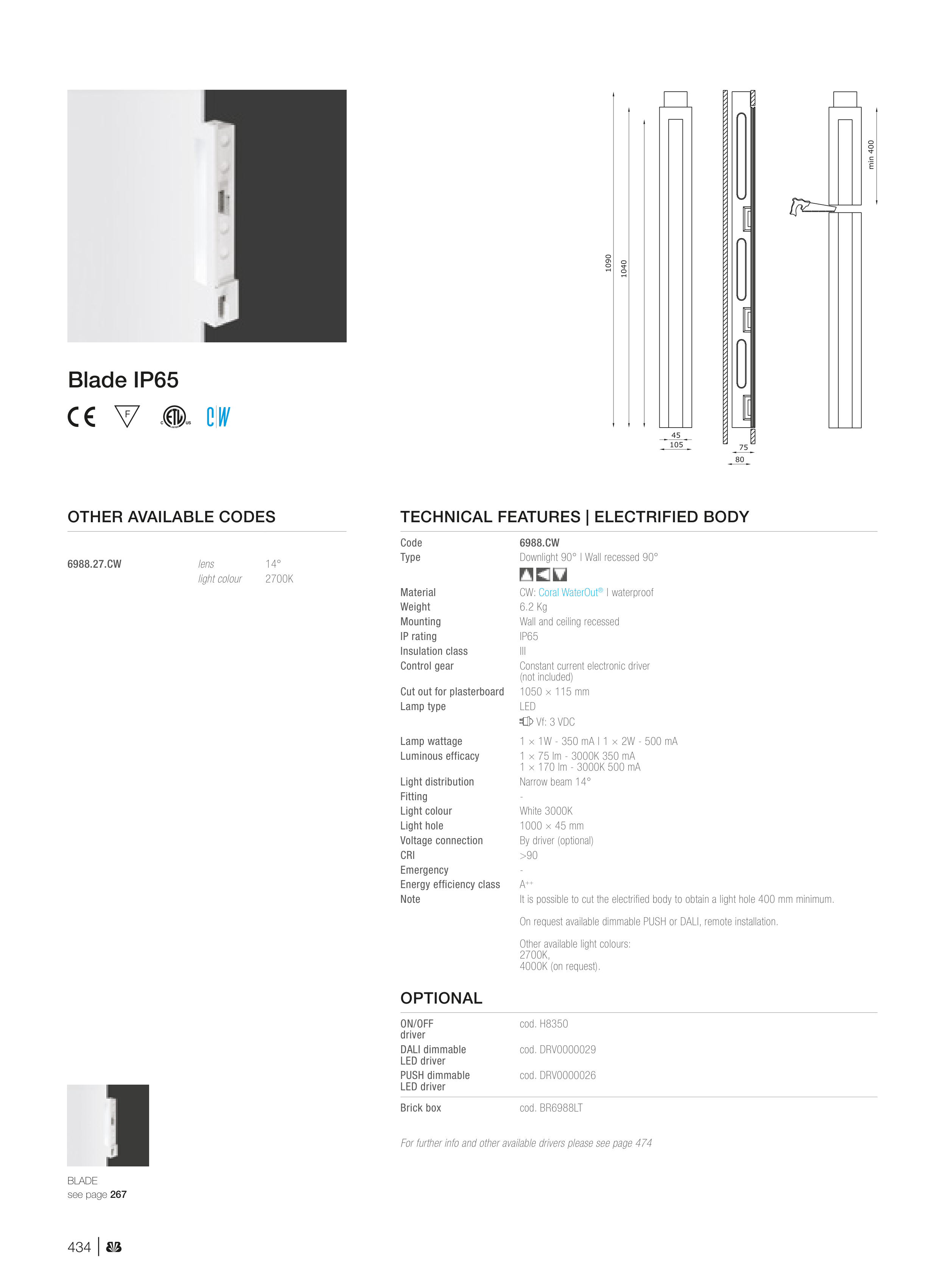 On request available dimmable PUSH or DALI, remote installation.