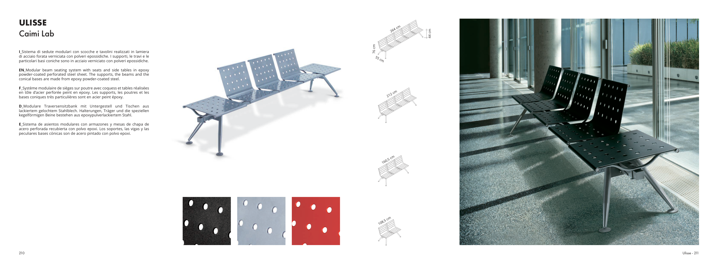 E_Sistema de asientos modulares con armazones y mesas de chapa de