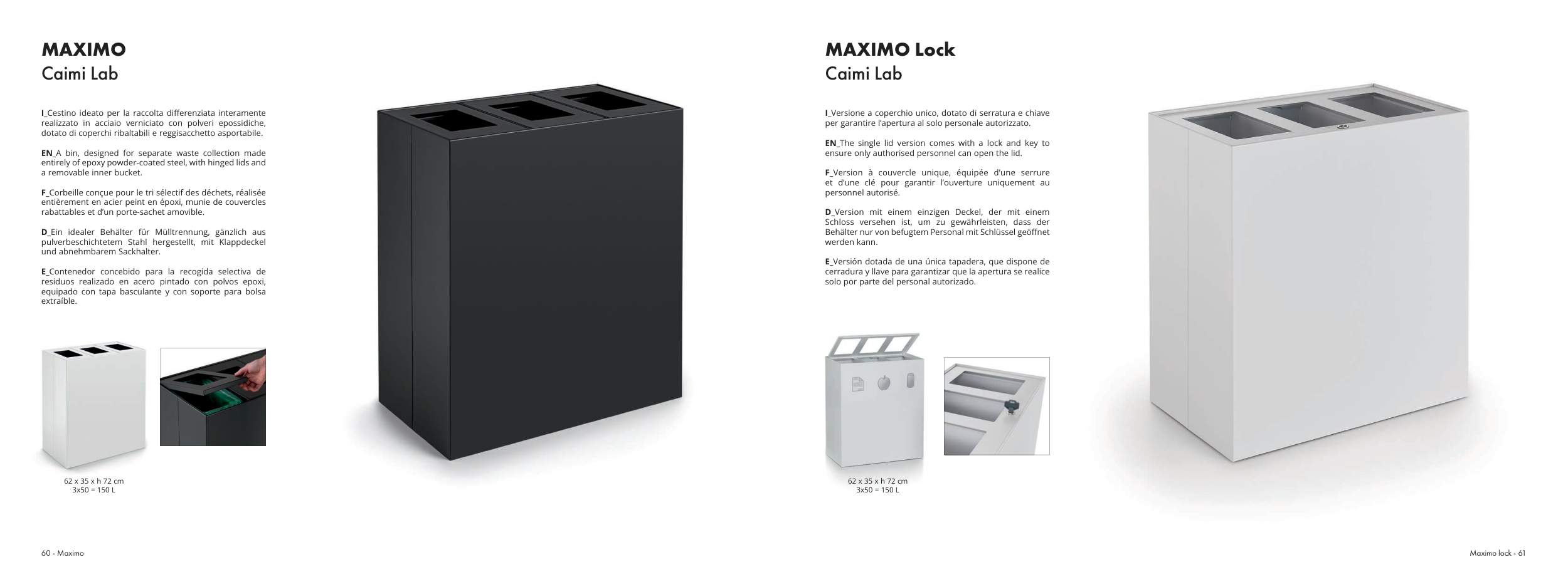 entirely of epoxy powder-coated steel, with hinged lids and