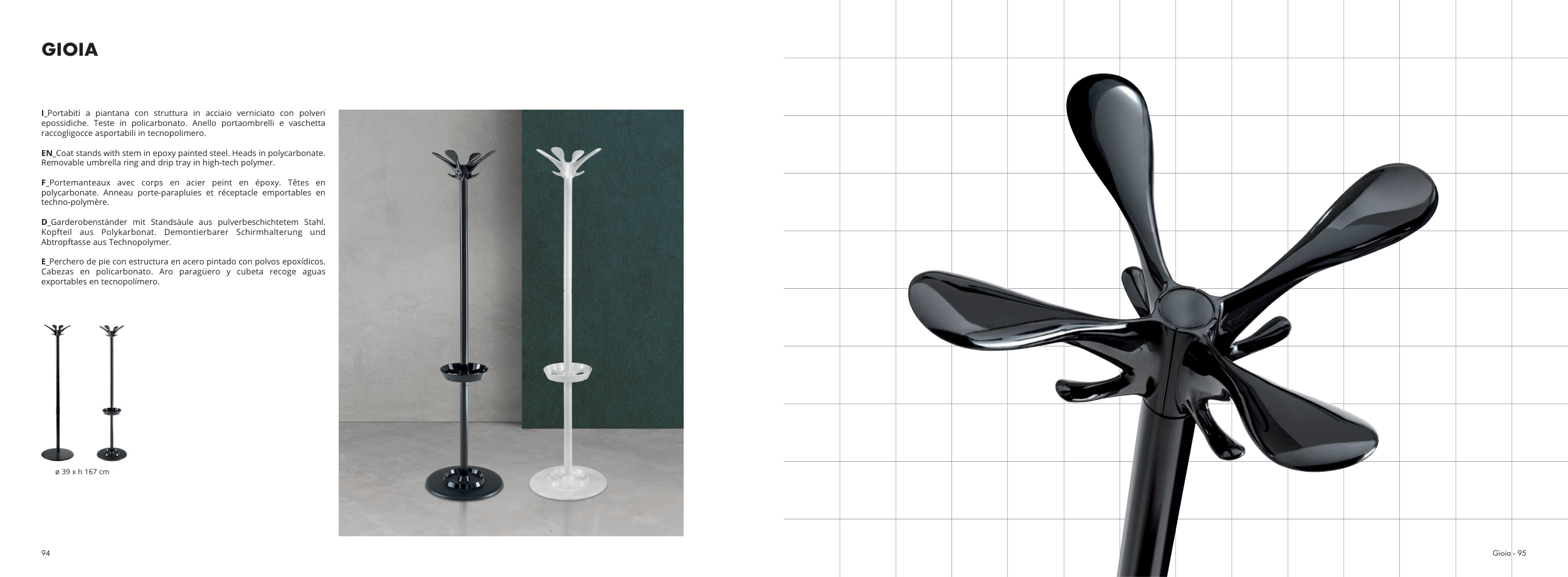 EN_Coat stands with stem in epoxy painted steel. Heads in polycarbonate.