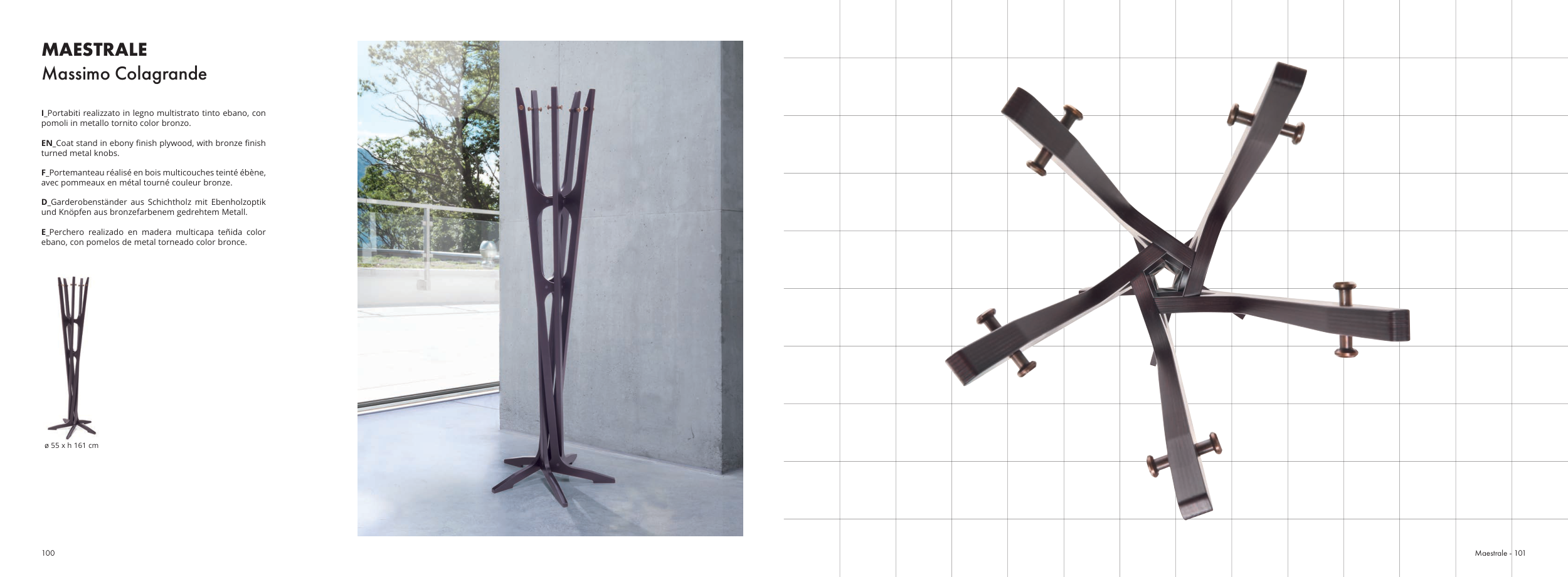 EN_Coat stand in ebony finish plywood, with bronze finish