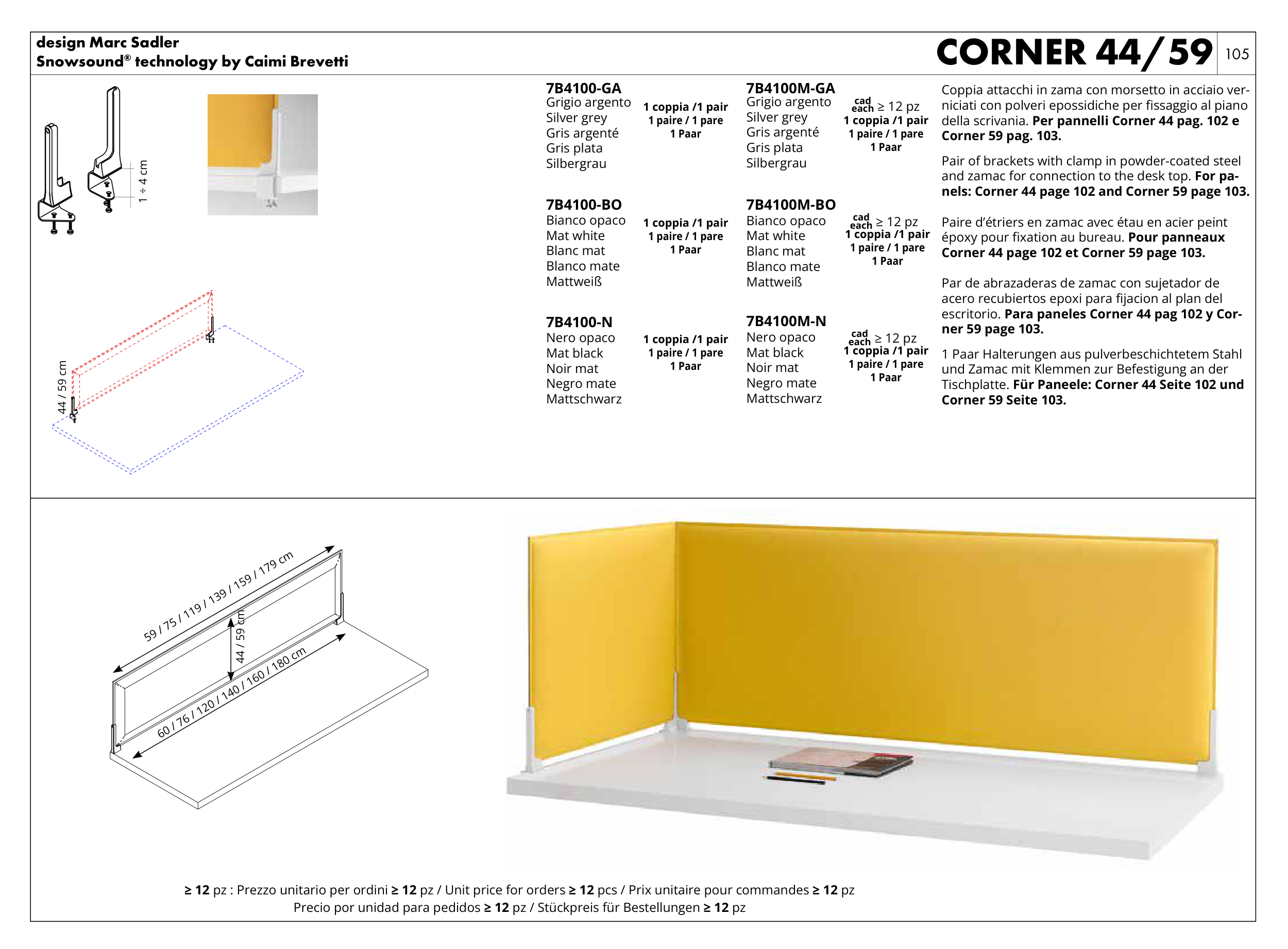 ≥ 12 pz : Prezzo unitario per ordini ≥ 12 pz / Unit price for orders ≥ 12 pcs / Prix unitaire pour commandes ≥ 12 pz