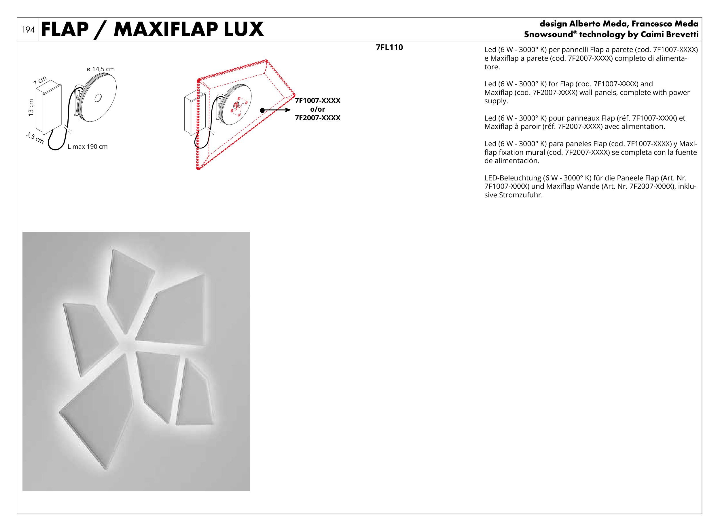 e Maxiflap a parete (cod. 7F2007-XXXX) completo di alimenta-