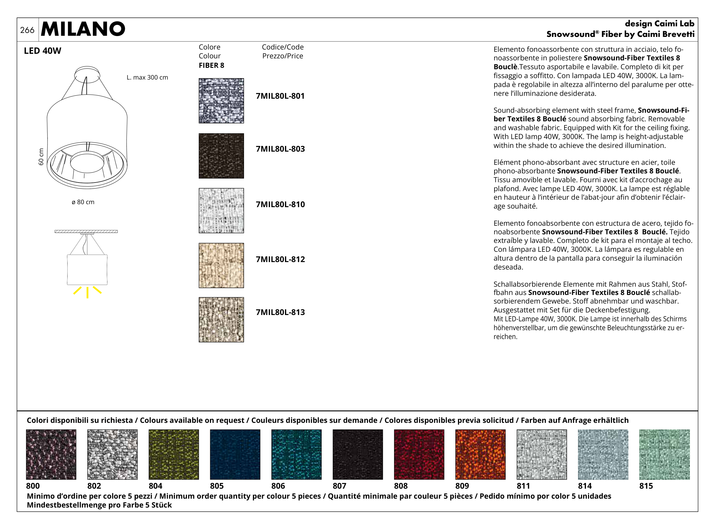 Colori disponibili su richiesta / Colours available on request / Couleurs disponibles sur demande / Colores disponibles previa solicitud / Farben auf Anfrage erhältlich