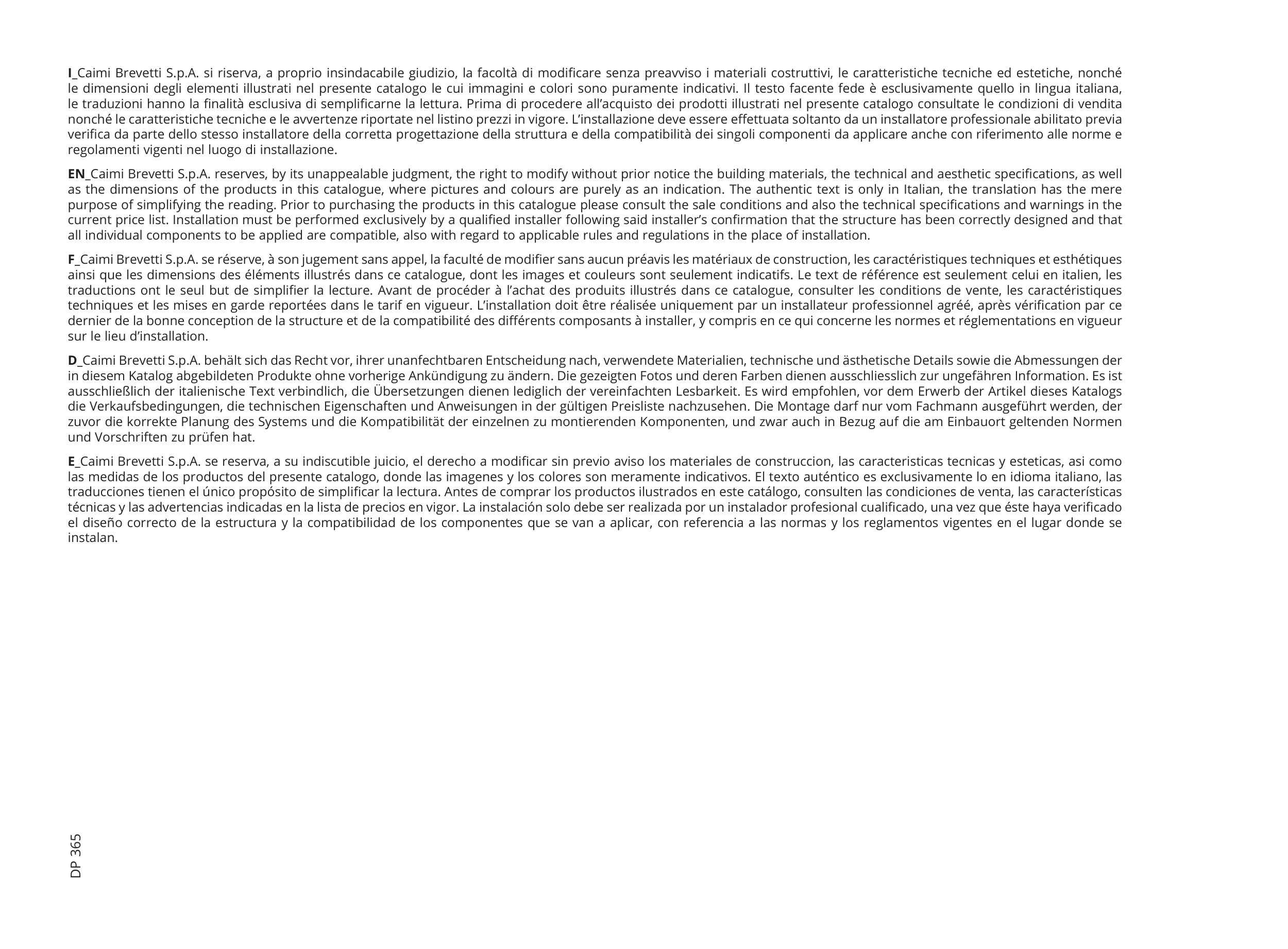 Caimi Brevetti Italy Lead time 60 days