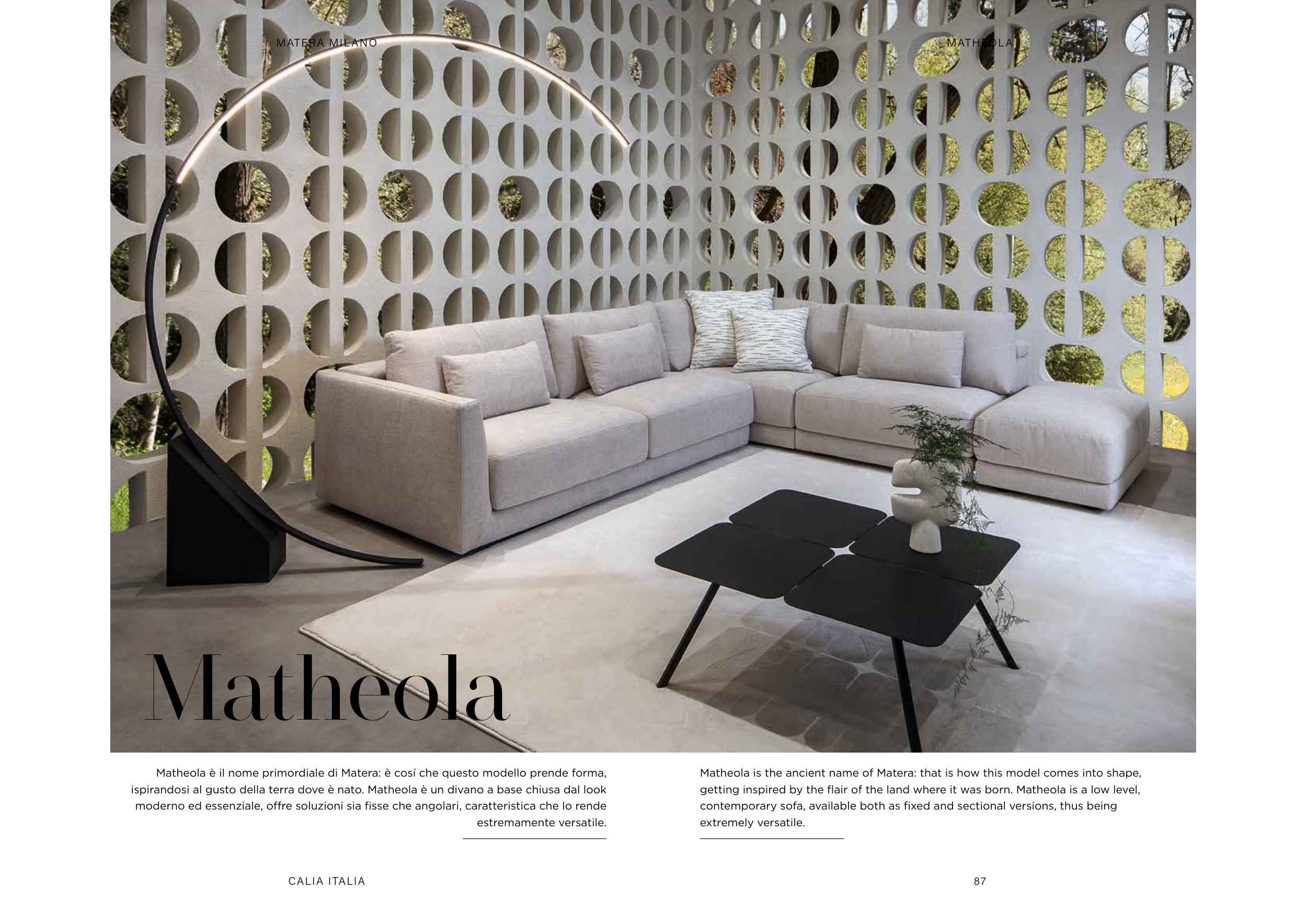 ispirandosi al gusto della terra dove è nato. Matheola è un divano a base chiusa dal look