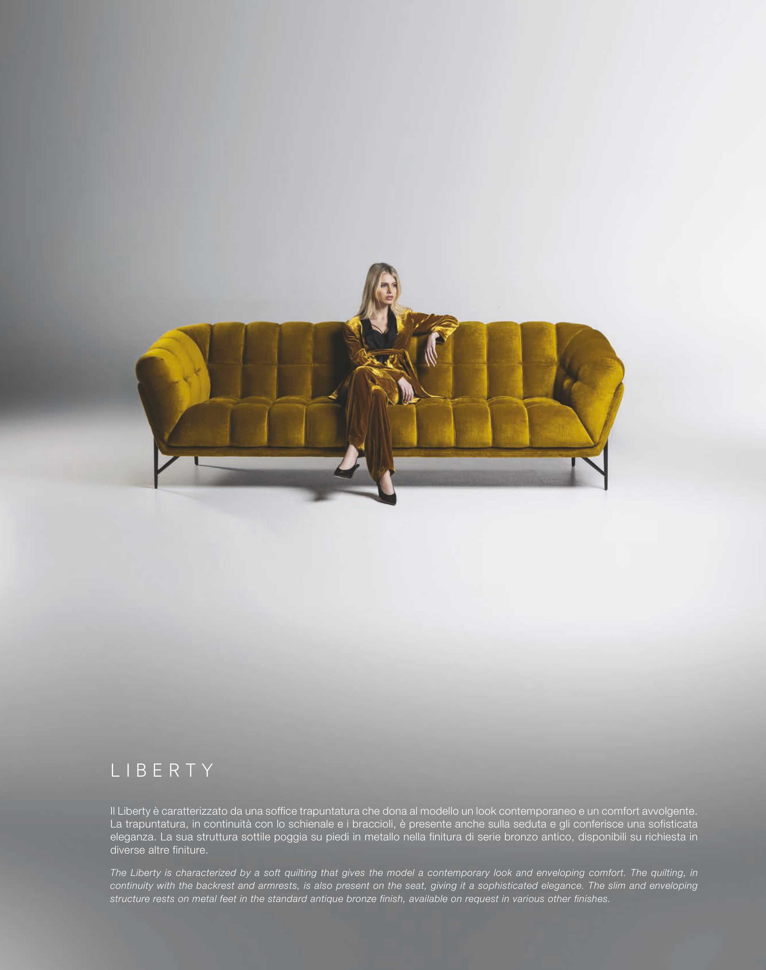 The Liberty is characterized by a soft quilting that gives the model a contemporary look and enveloping comfort. The quilting, in