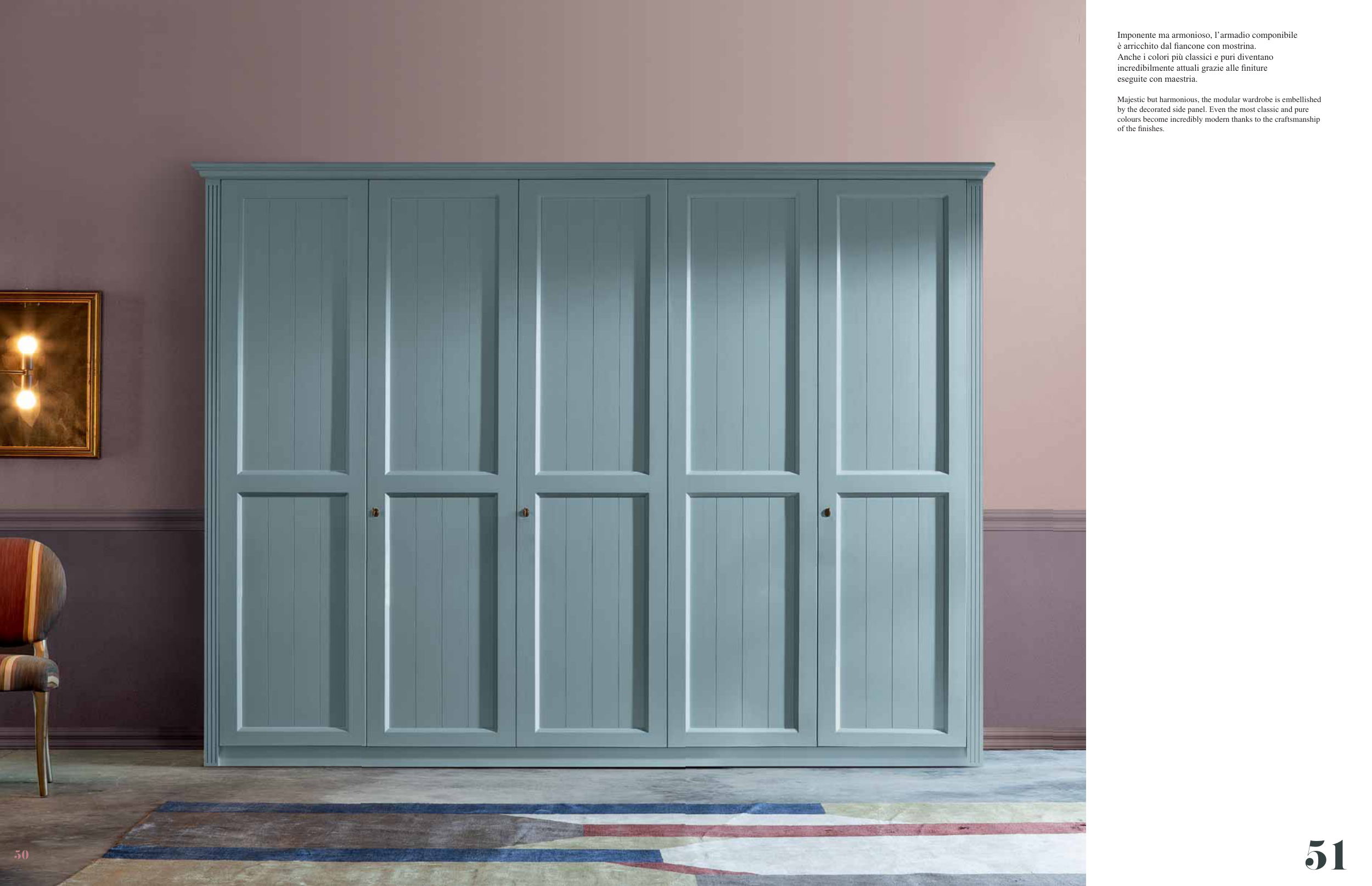 Majestic but harmonious, the modular wardrobe is embellished