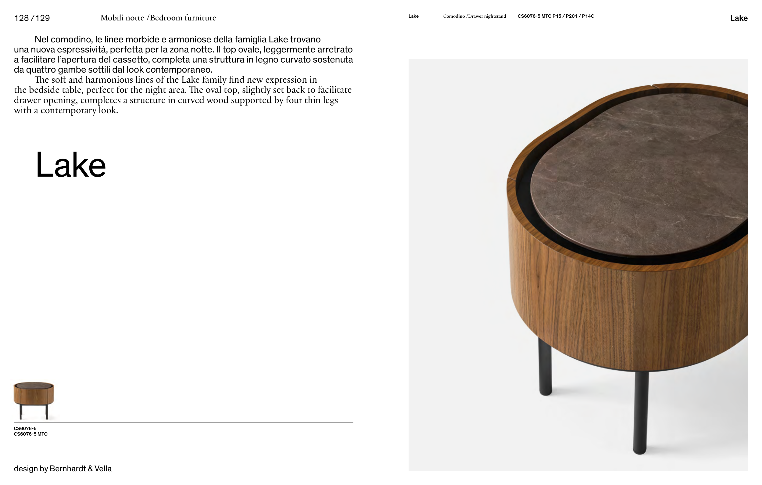 Nel comodino, le linee morbide e armoniose della famiglia Lake trovano