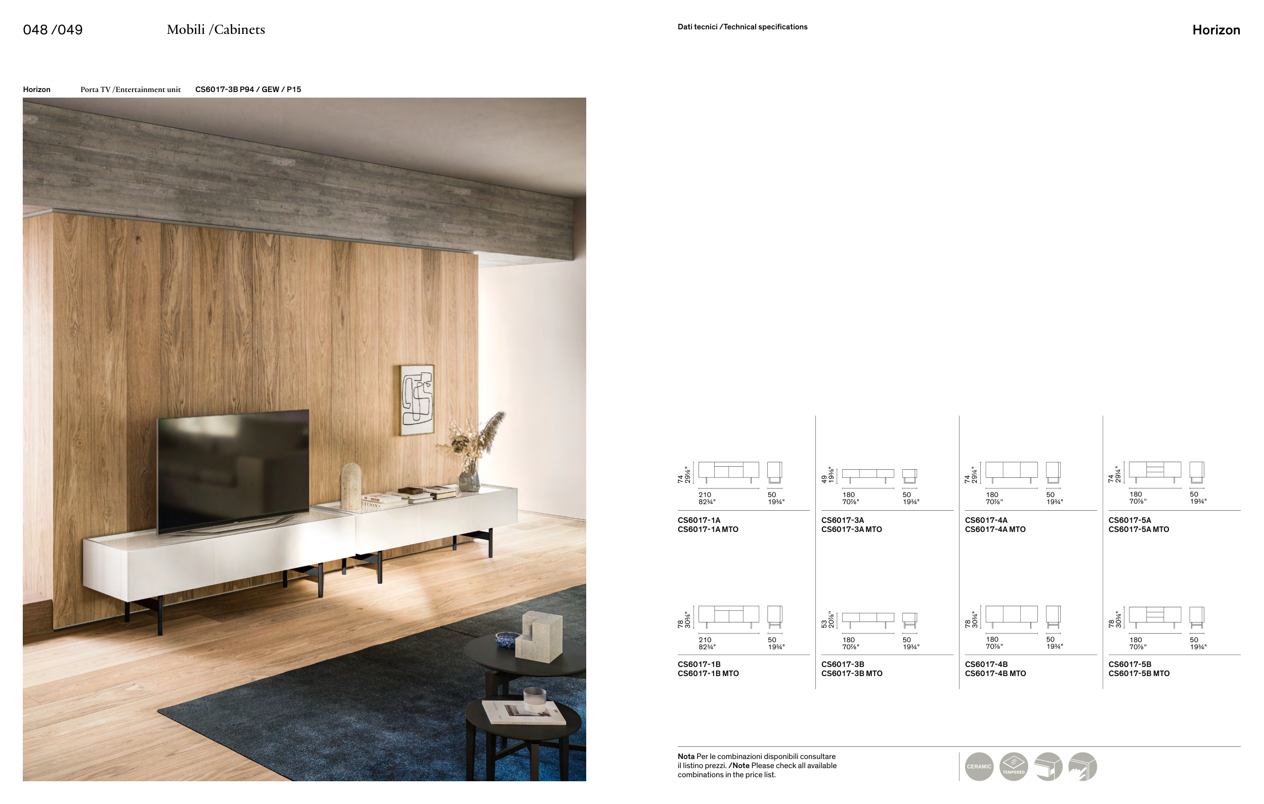 Nota Per le combinazioni disponibili consultare