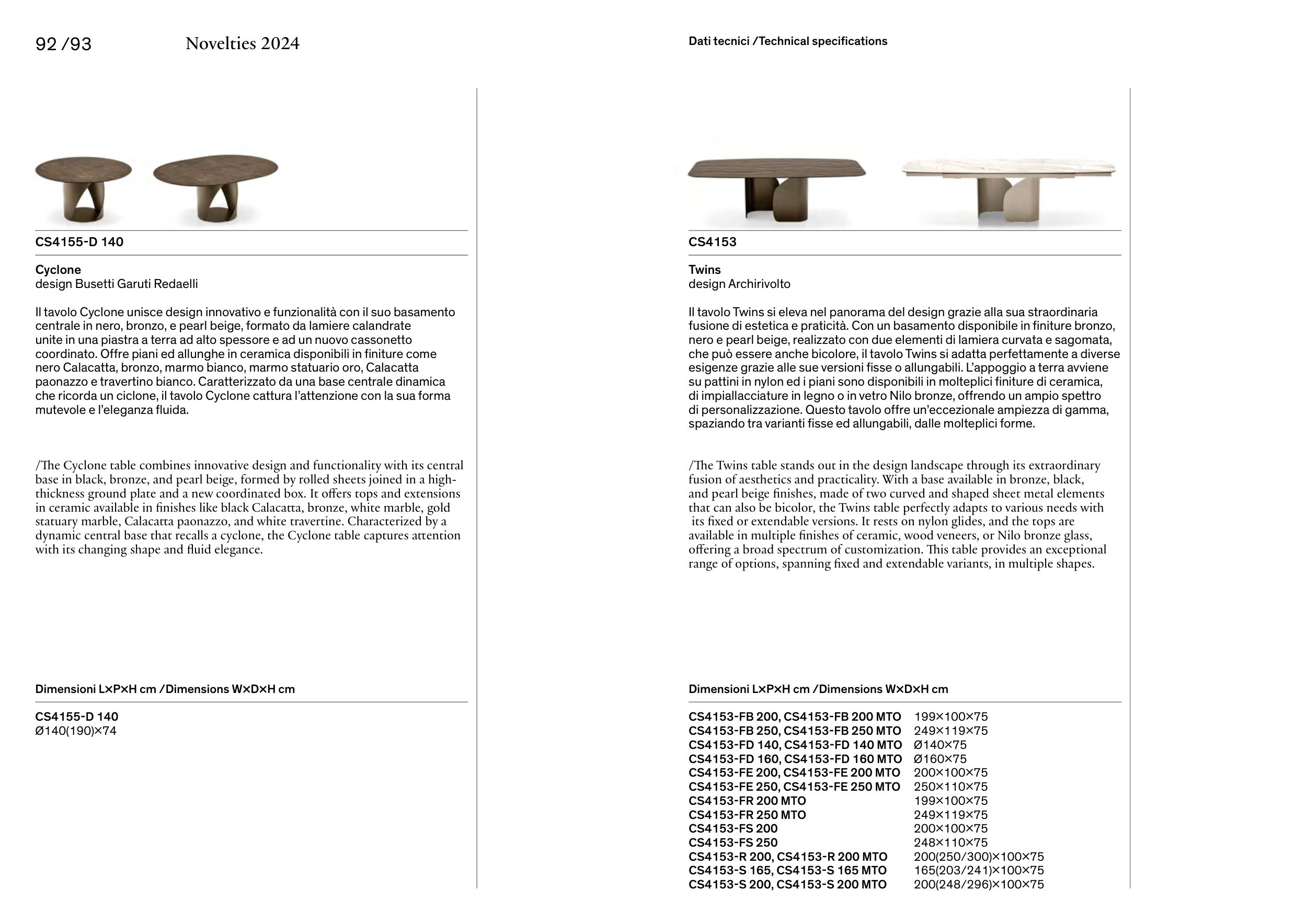 Dimensioni L×P×H cm /Dimensions W×D×H cm