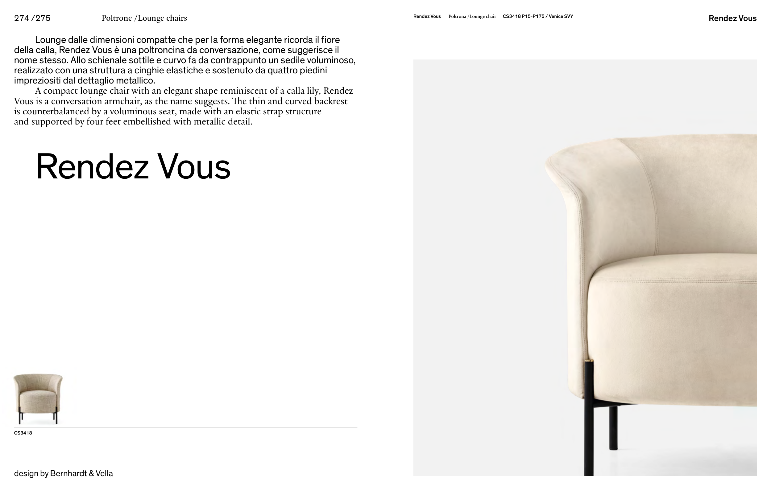 della calla, Rendez Vous è una poltroncina da conversazione, come suggerisce il