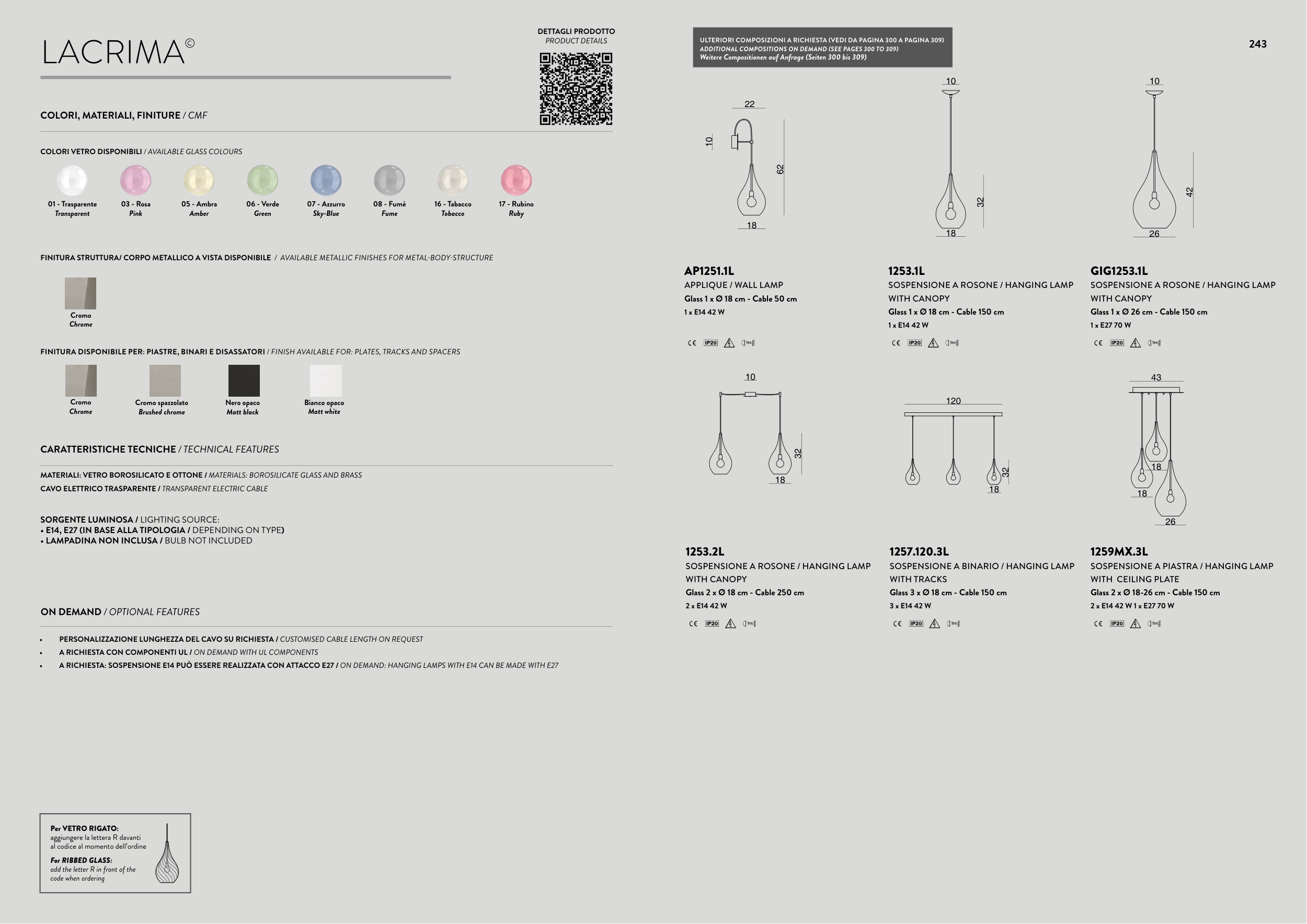A RICHIESTA: SOSPENSIONE E14 PUÒ ESSERE REALIZZATA CON ATTACCO E27 / ON DEMAND: HANGING LAMPS WITH E14 CAN BE MADE WITH E27