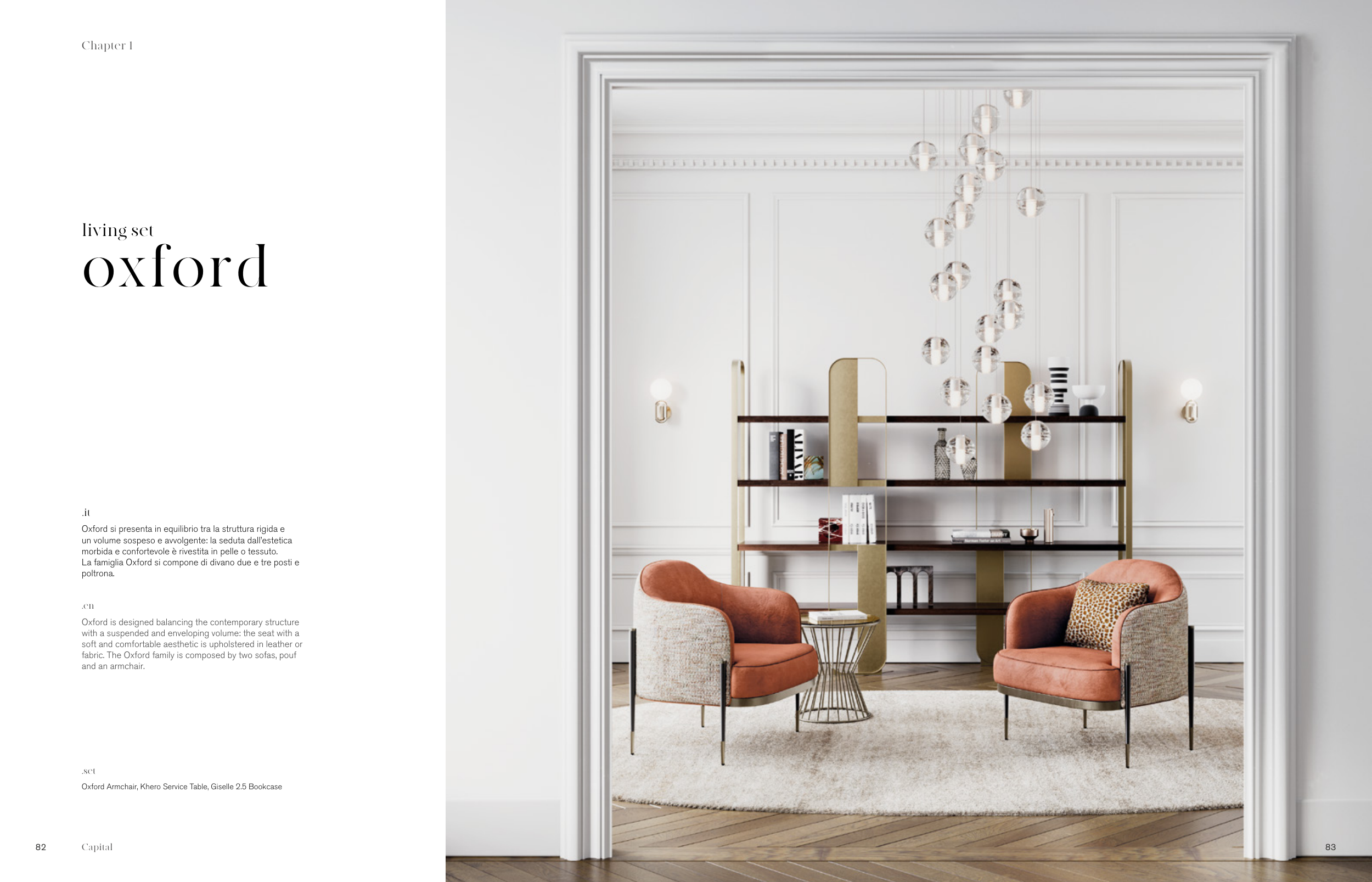 Oxford Armchair, Khero Service Table, Giselle 2.5 Bookcase