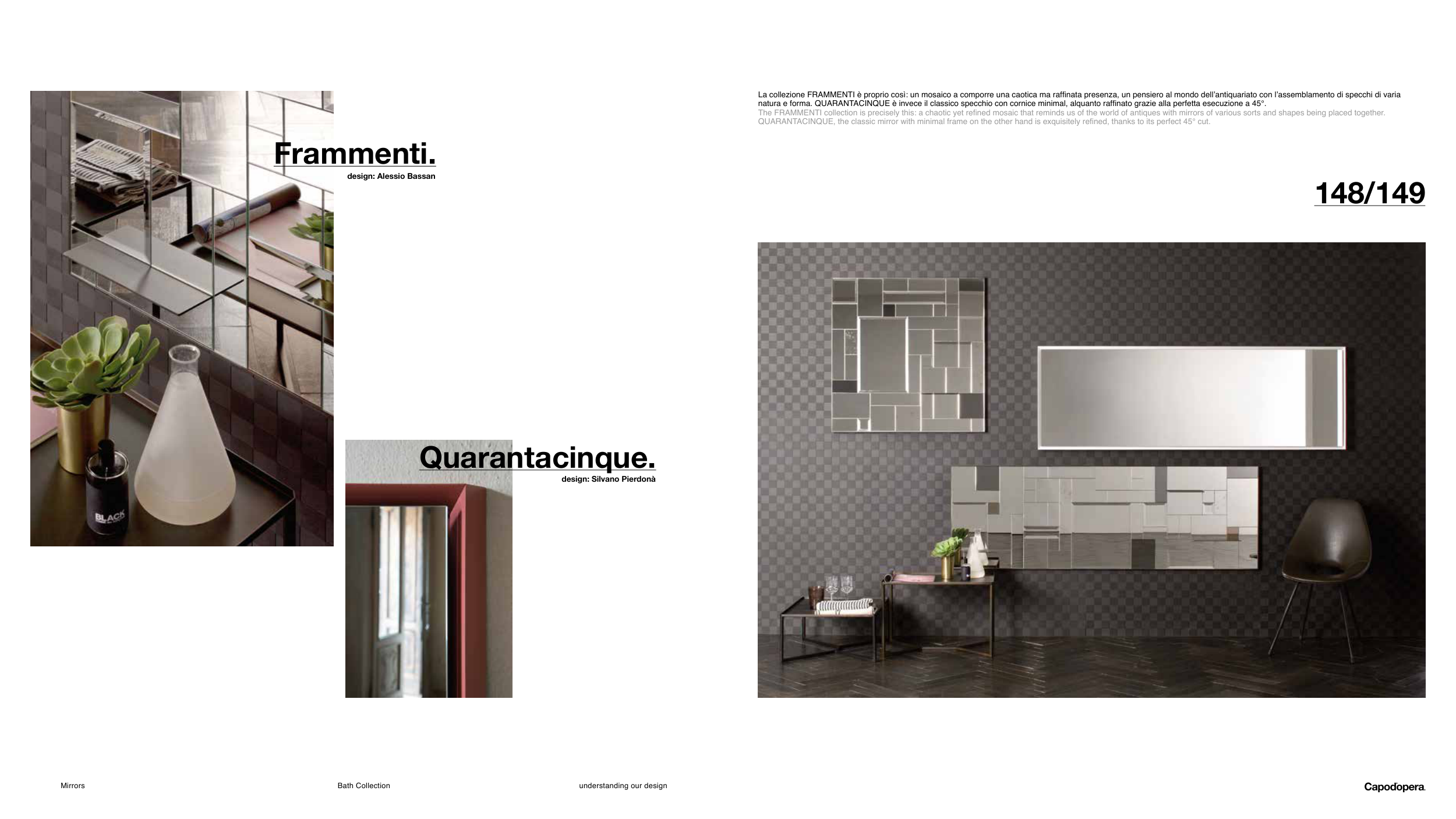natura e forma. QUARANTACINQUE è invece il classico specchio con cornice minimal, alquanto raffinato grazie alla perfetta esecuzione a 45°.