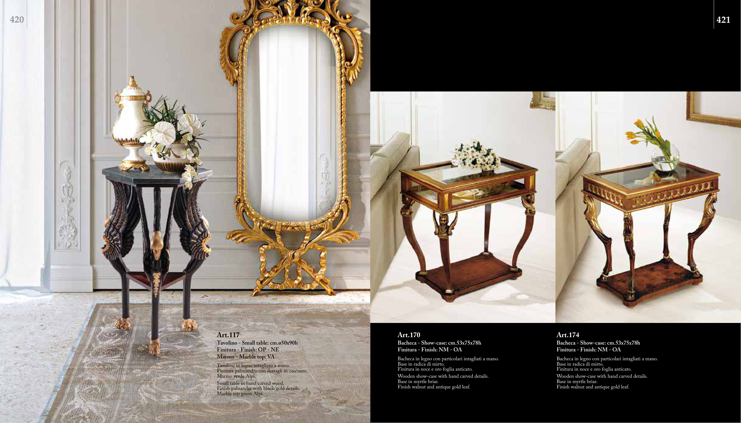 Finitura in noce e oro foglia anticato.