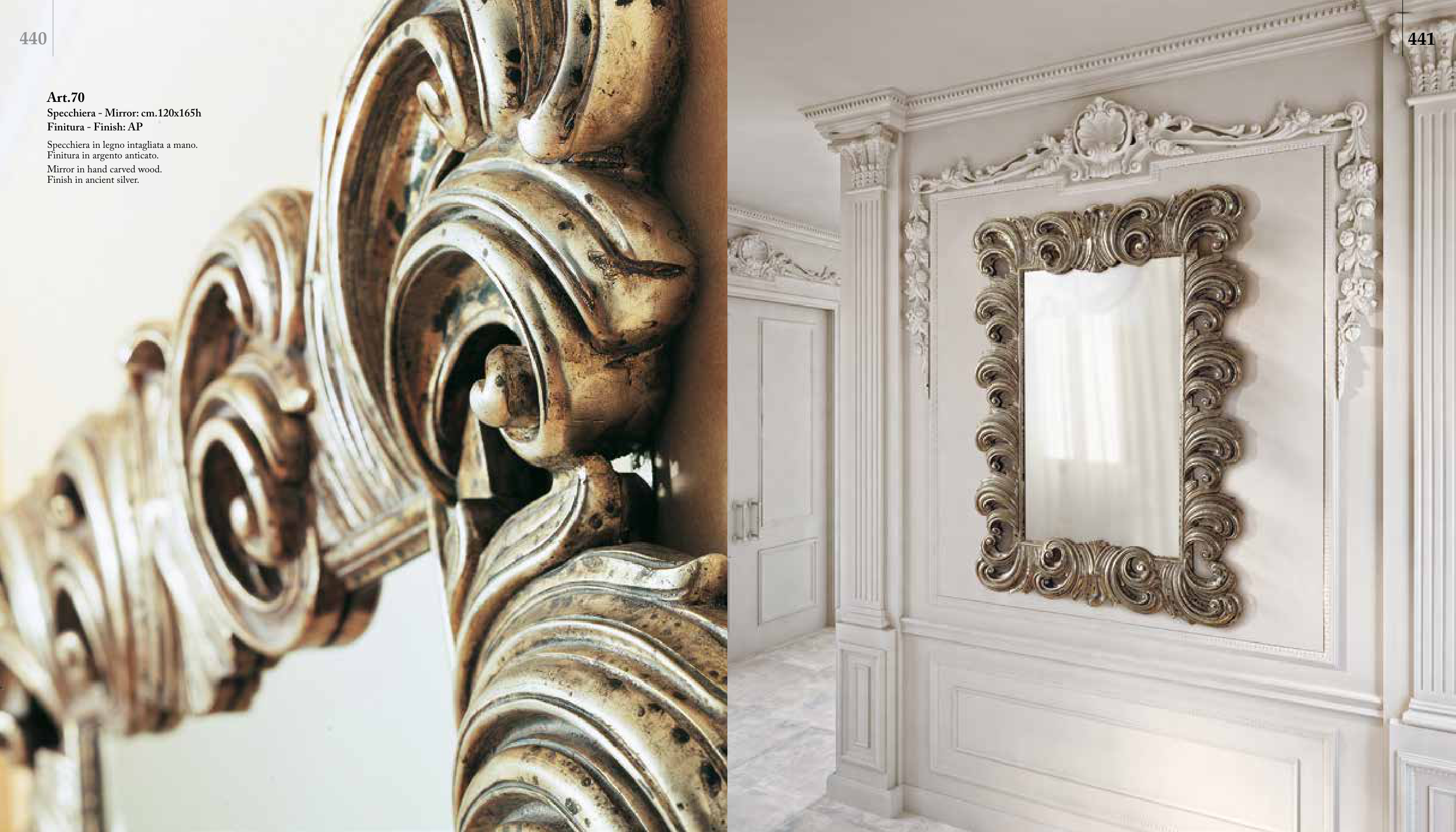 Specchiera in legno intagliata a mano.