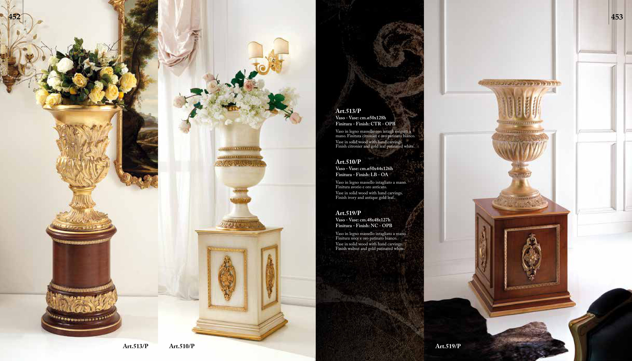 Finitura noce e oro patinato bianco.