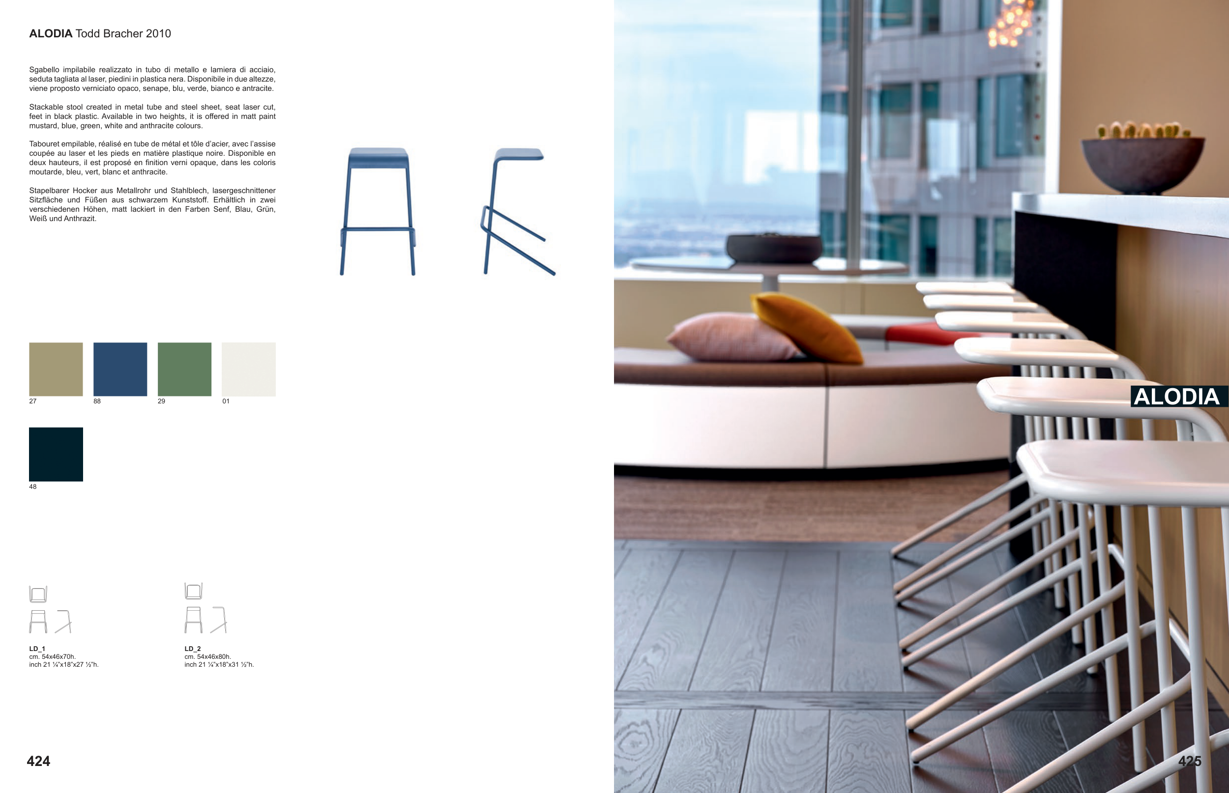 viene proposto verniciato opaco, senape, blu, verde, bianco e antracite.