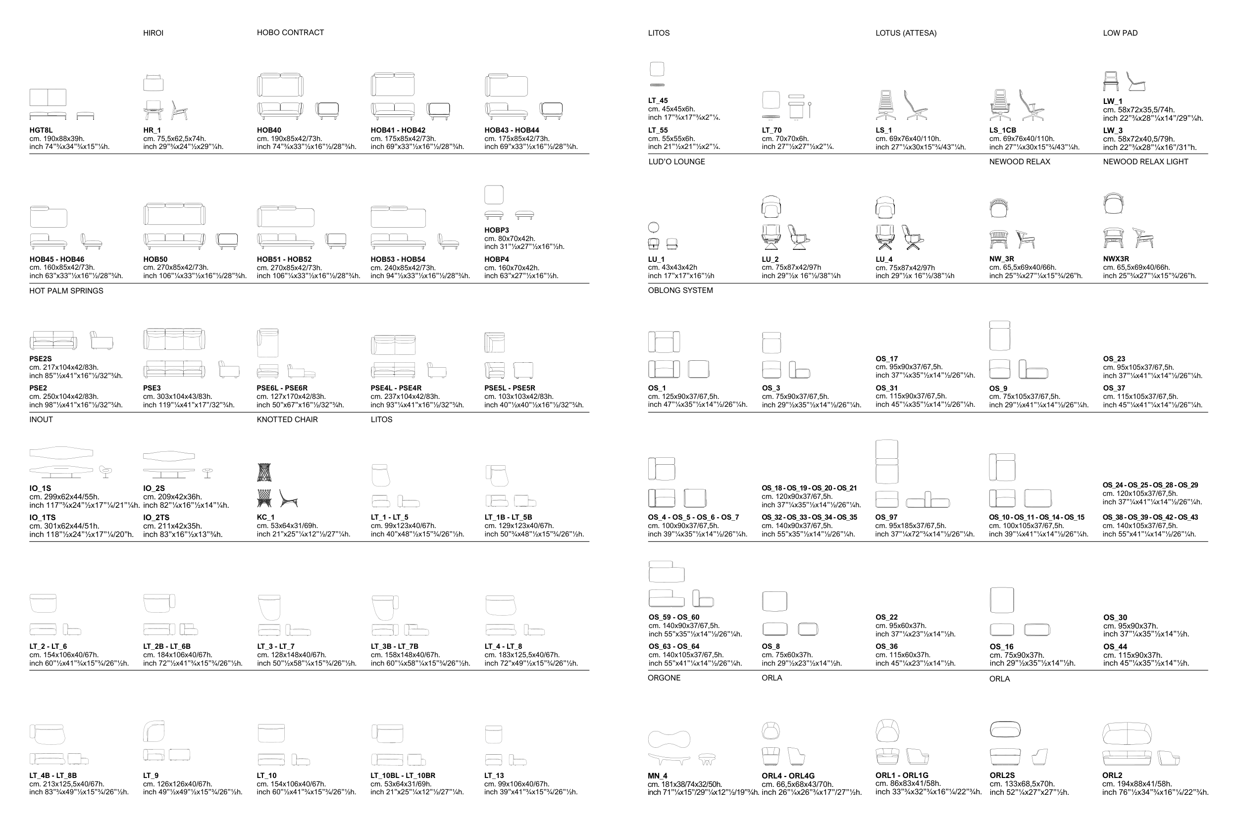 inch 76”½x34”¾x16”¼/22”¾h.