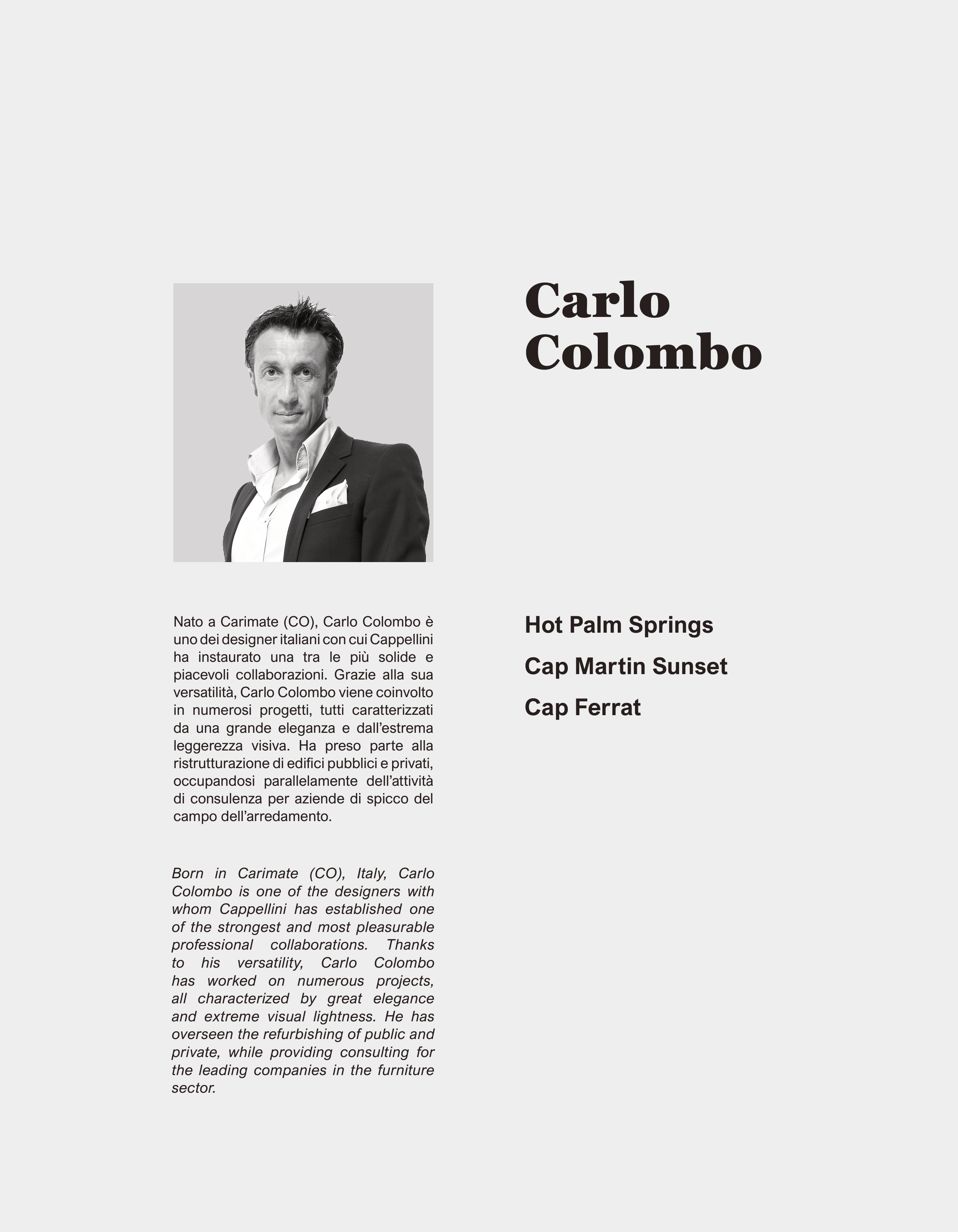 Born in Carimate (CO), Italy, Carlo
