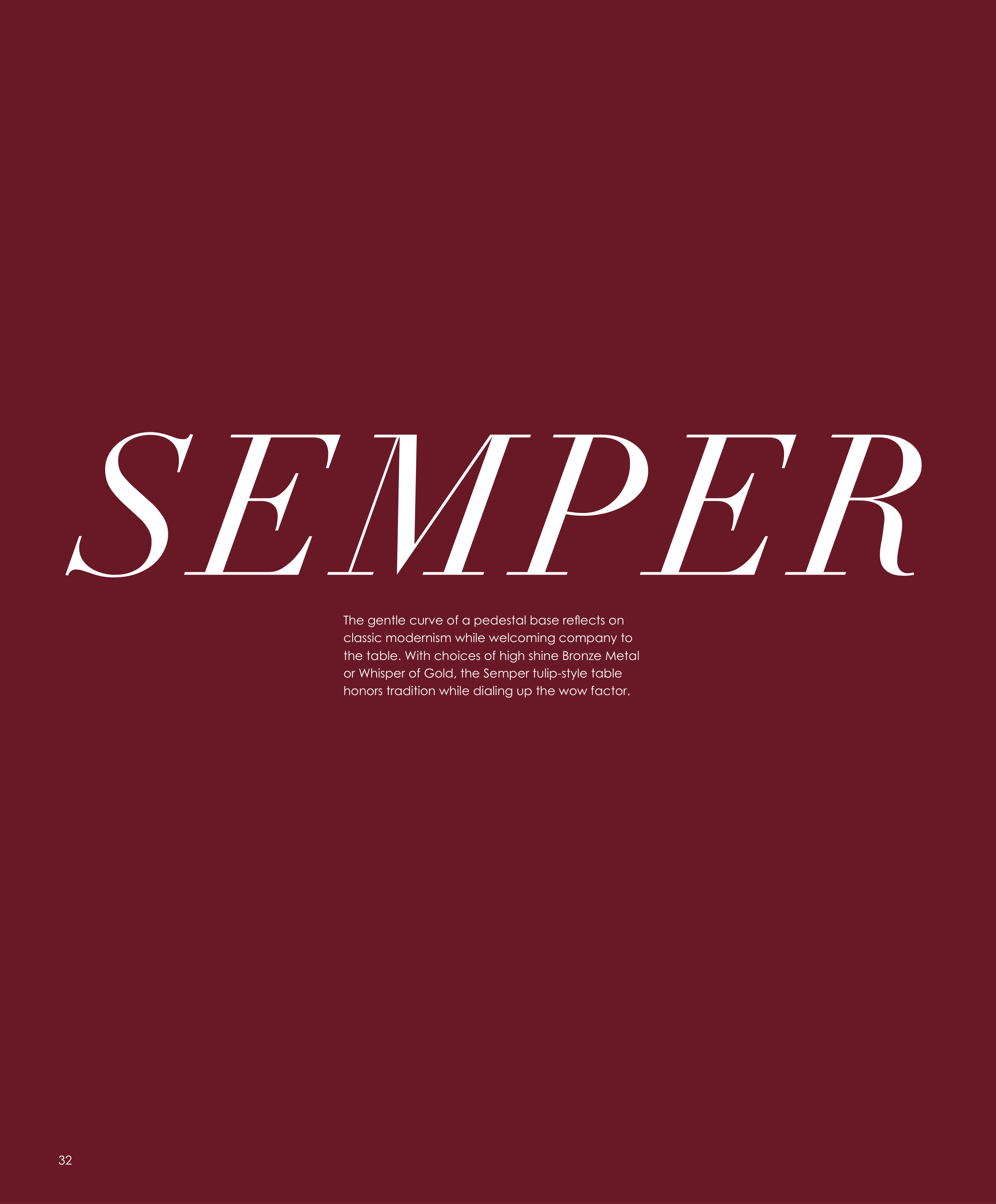 or Whisper of Gold, the Semper tulip-style table