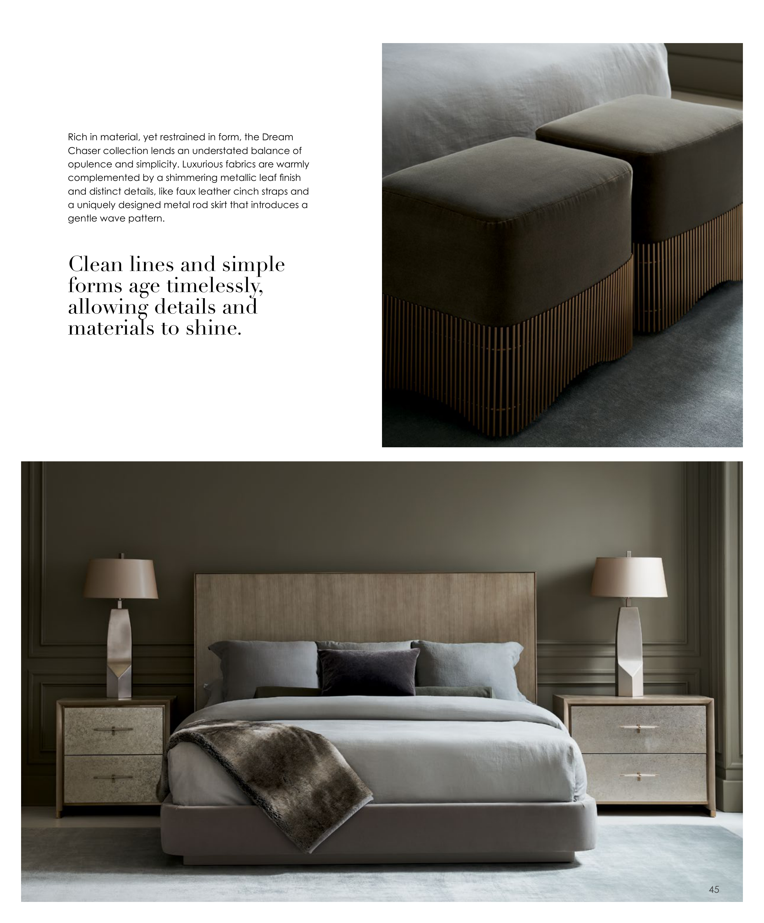 opulence and simplicity. Luxurious fabrics are warmly
