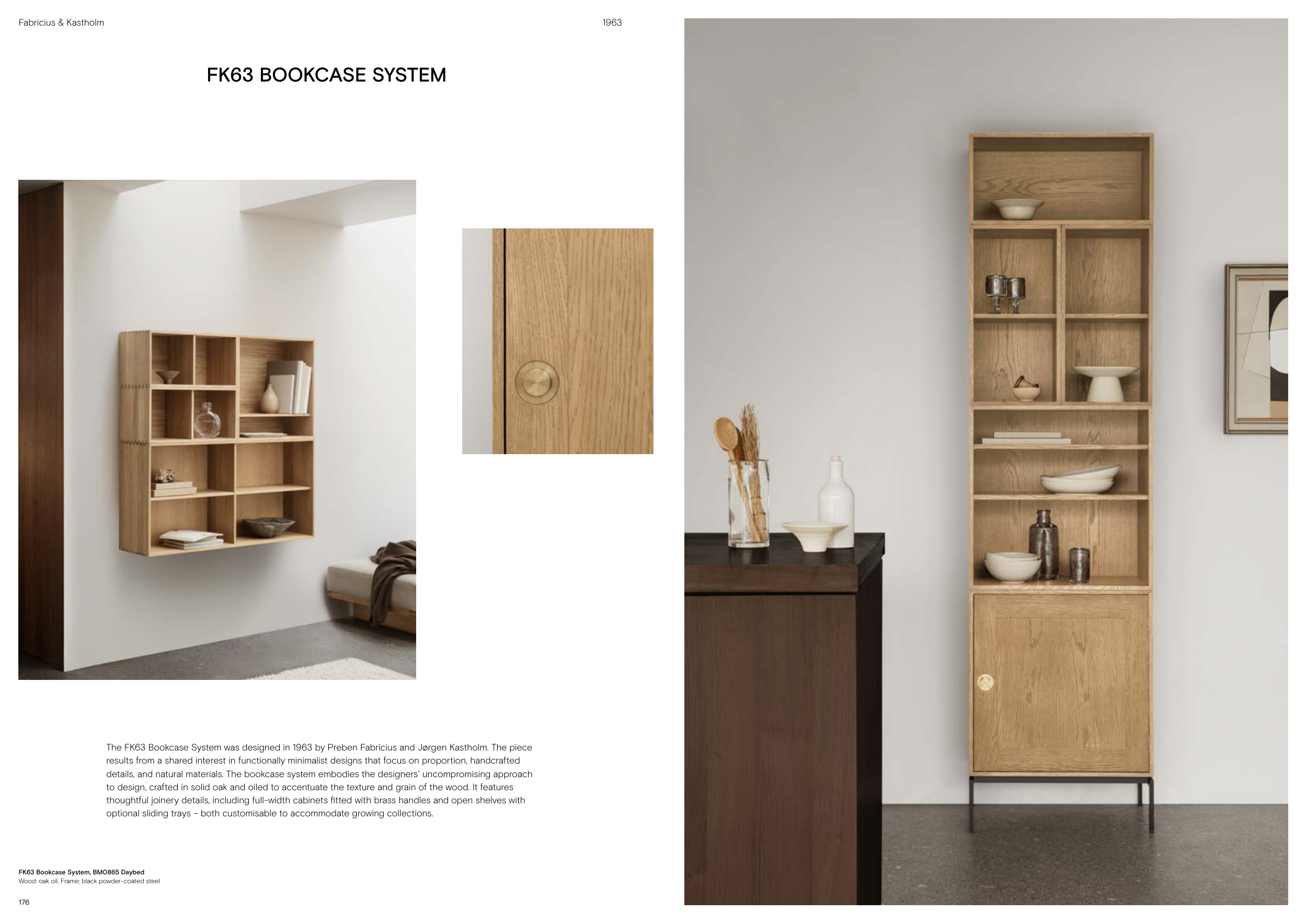 details, and natural materials. The bookcase system embodies the designers’ uncompromising approach