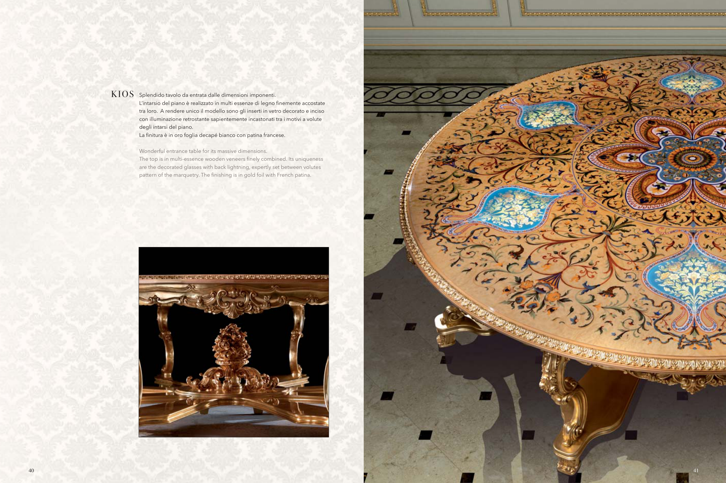 pattern of the marquetry. The finishing is in gold foil with French patina.