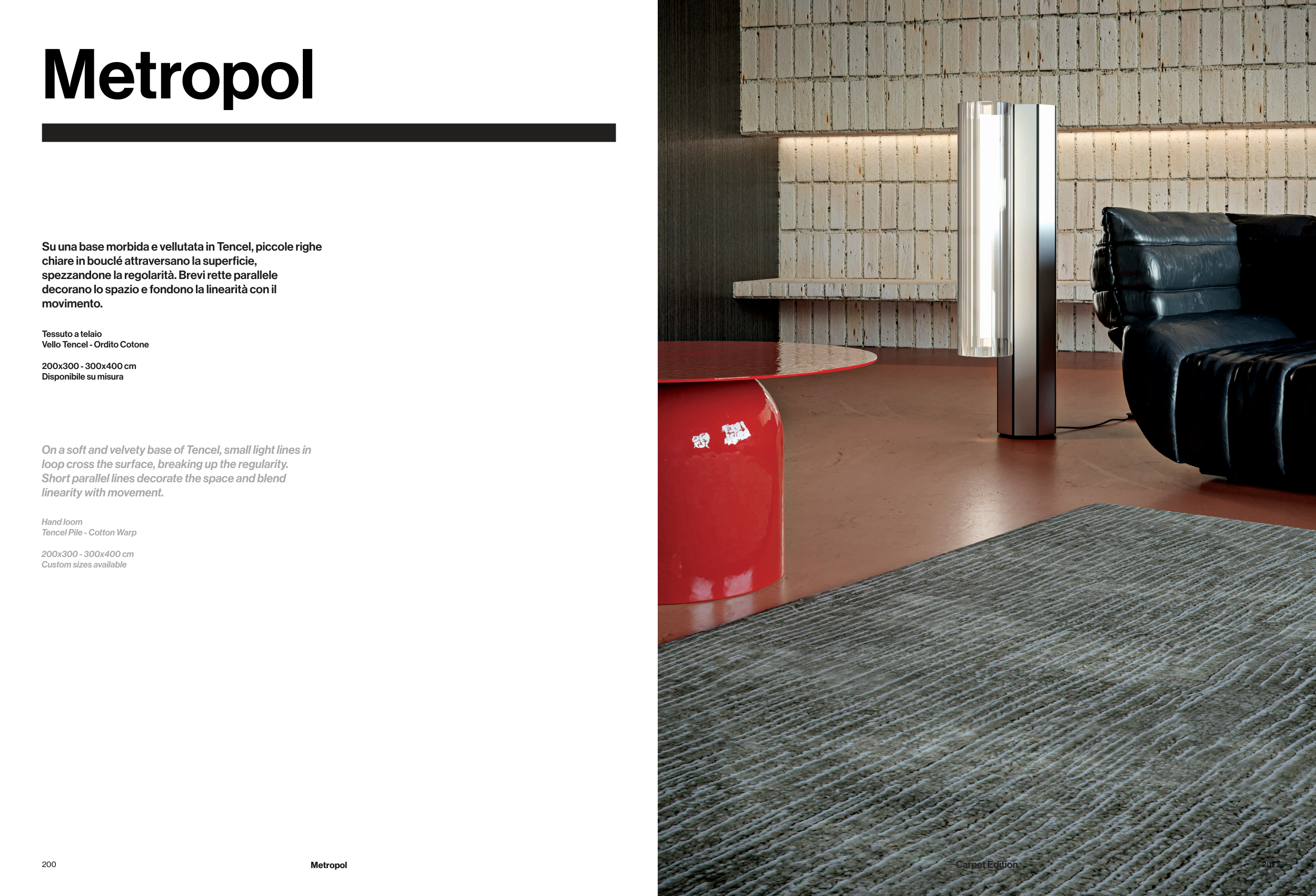 Su una base morbida e vellutata in Tencel, piccole righe