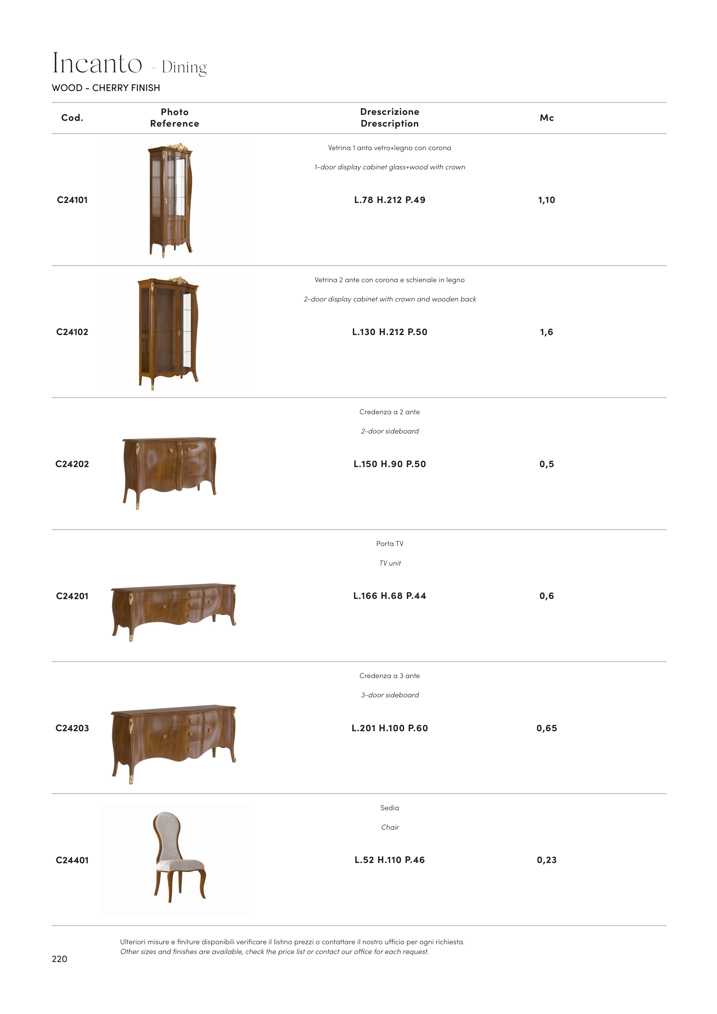 Ulteriori misure e finiture disponibili verificare il listino prezzi o contattare il nostro ufficio per ogni richiesta.