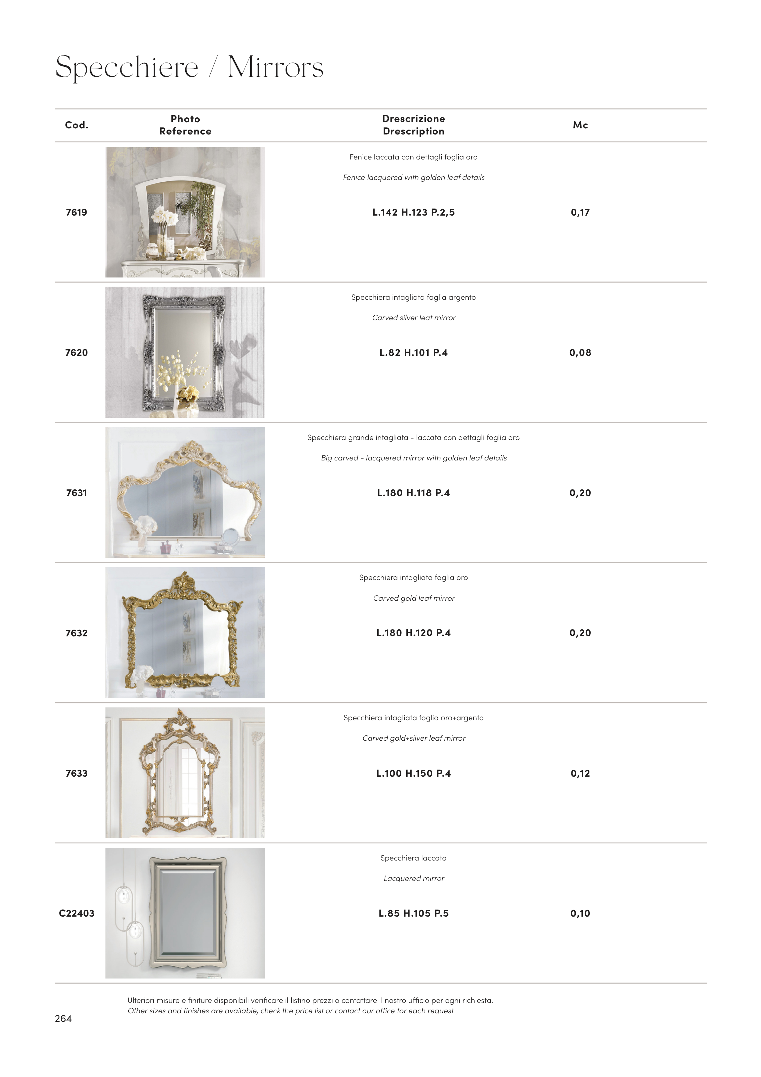 Ulteriori misure e finiture disponibili verificare il listino prezzi o contattare il nostro ufficio per ogni richiesta.
