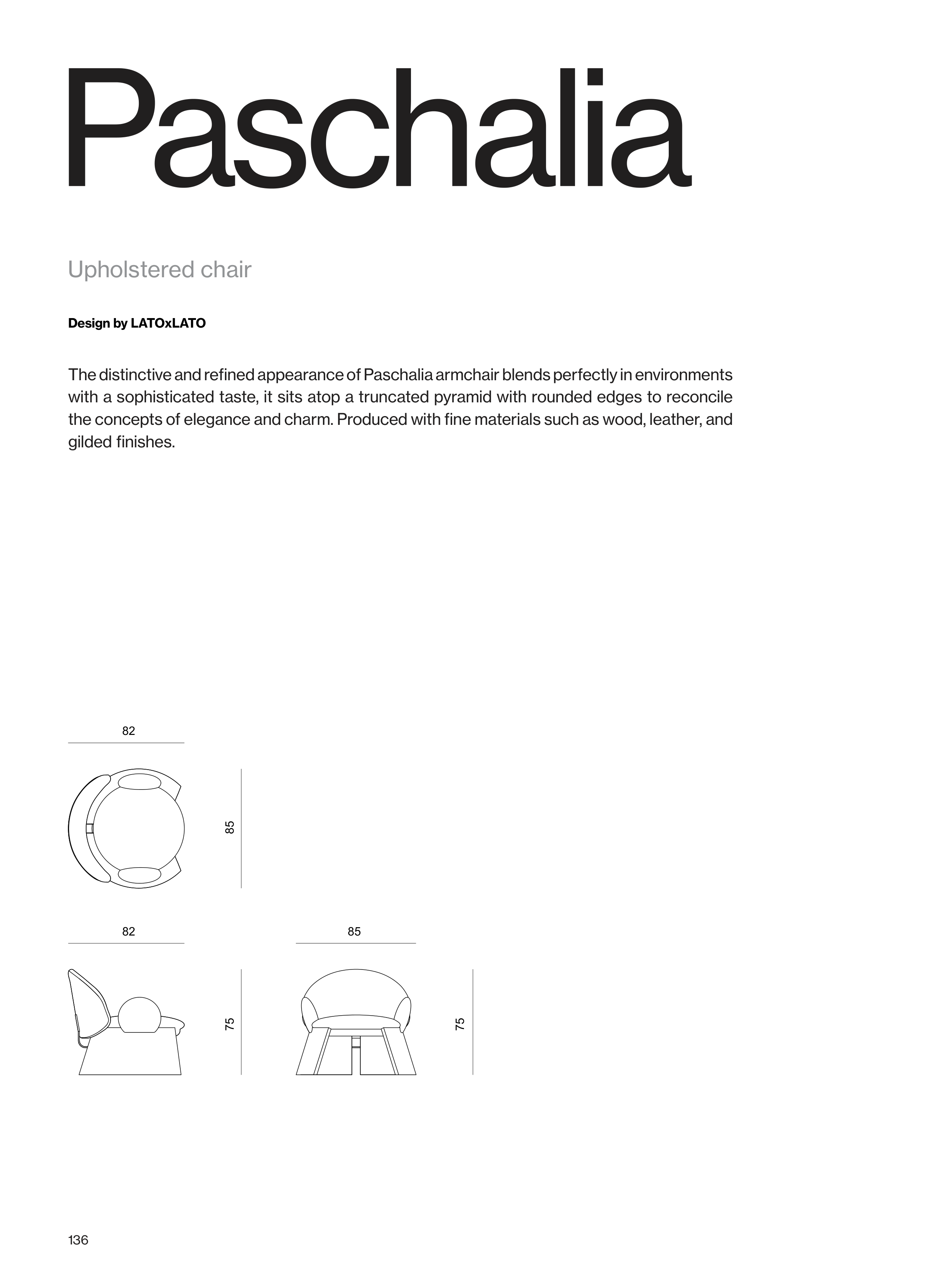The distinctive and refined appearance of Paschalia armchair blends perfectly in environments