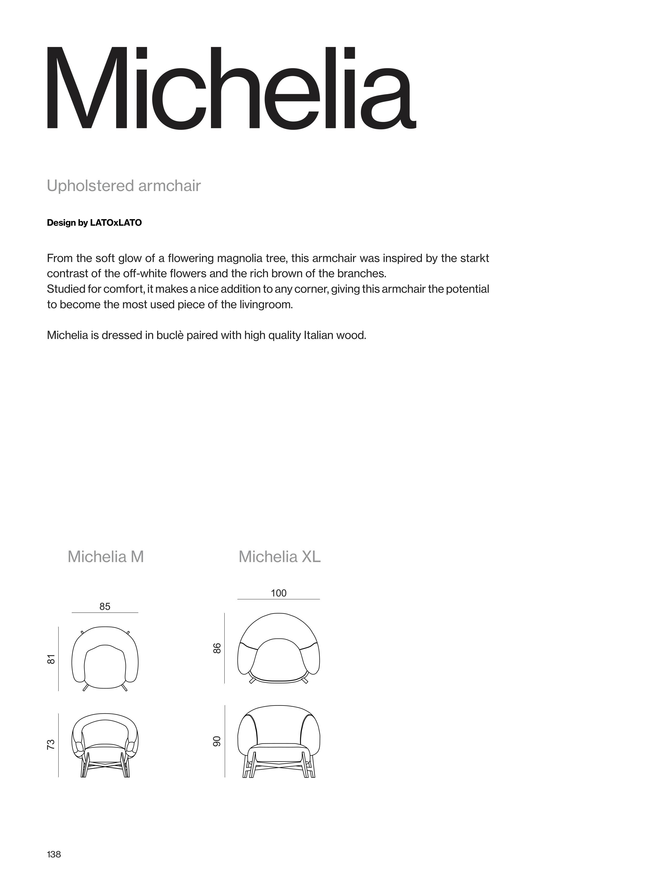 Michelia is dressed in buclè paired with high quality Italian wood.