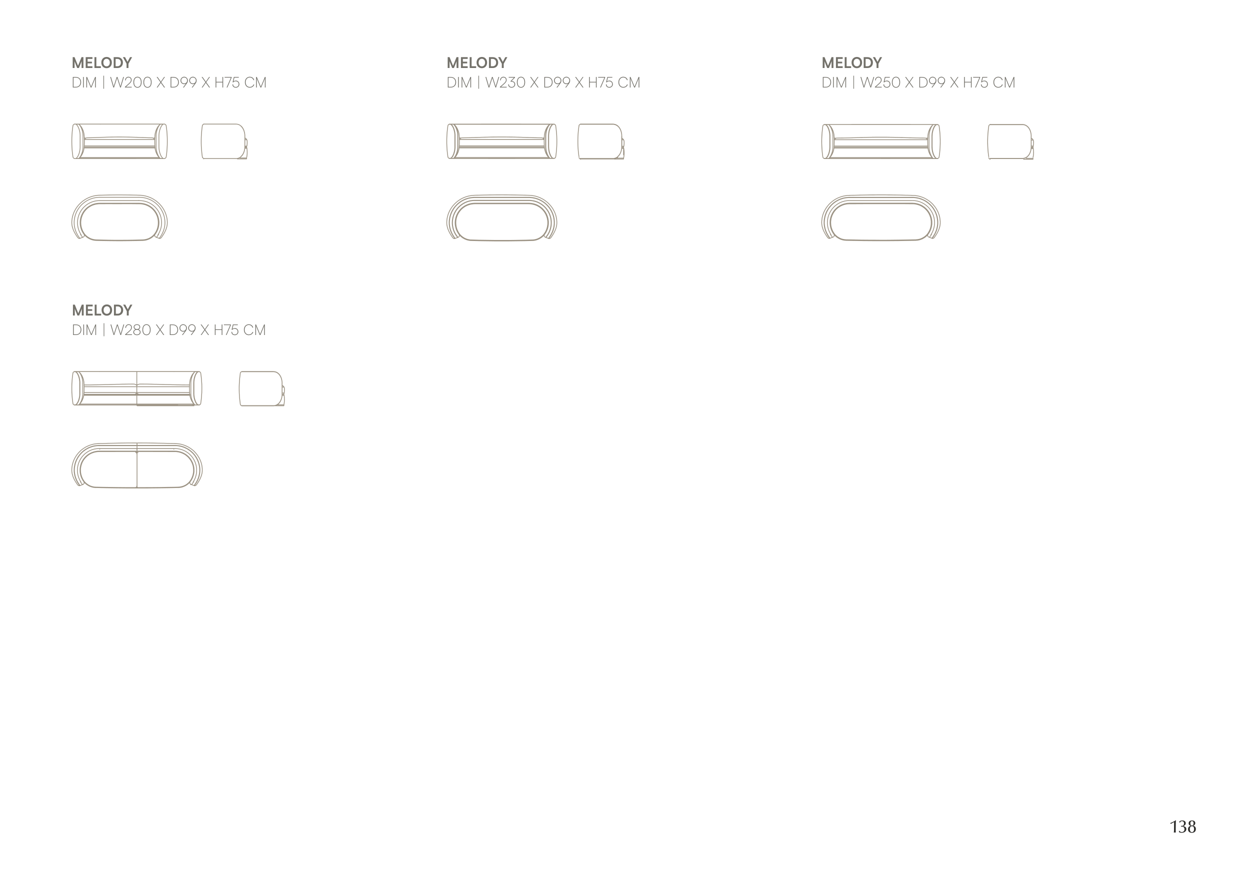 DIM | W230 X D99 X H75 CM