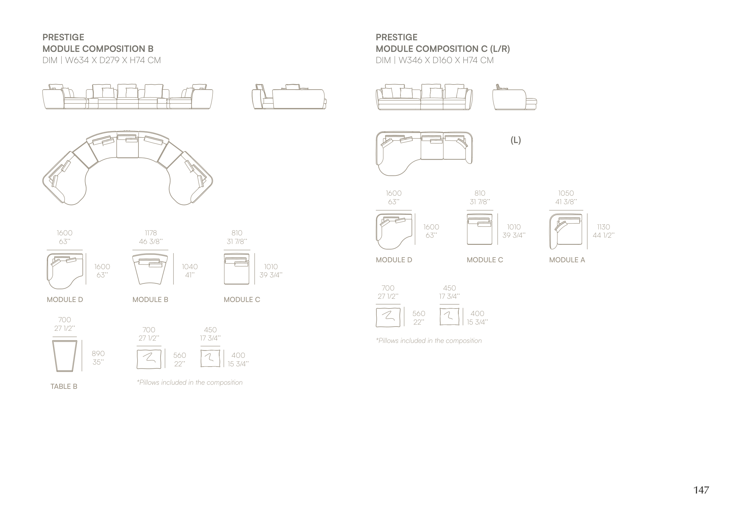 *Pillows included in the composition
