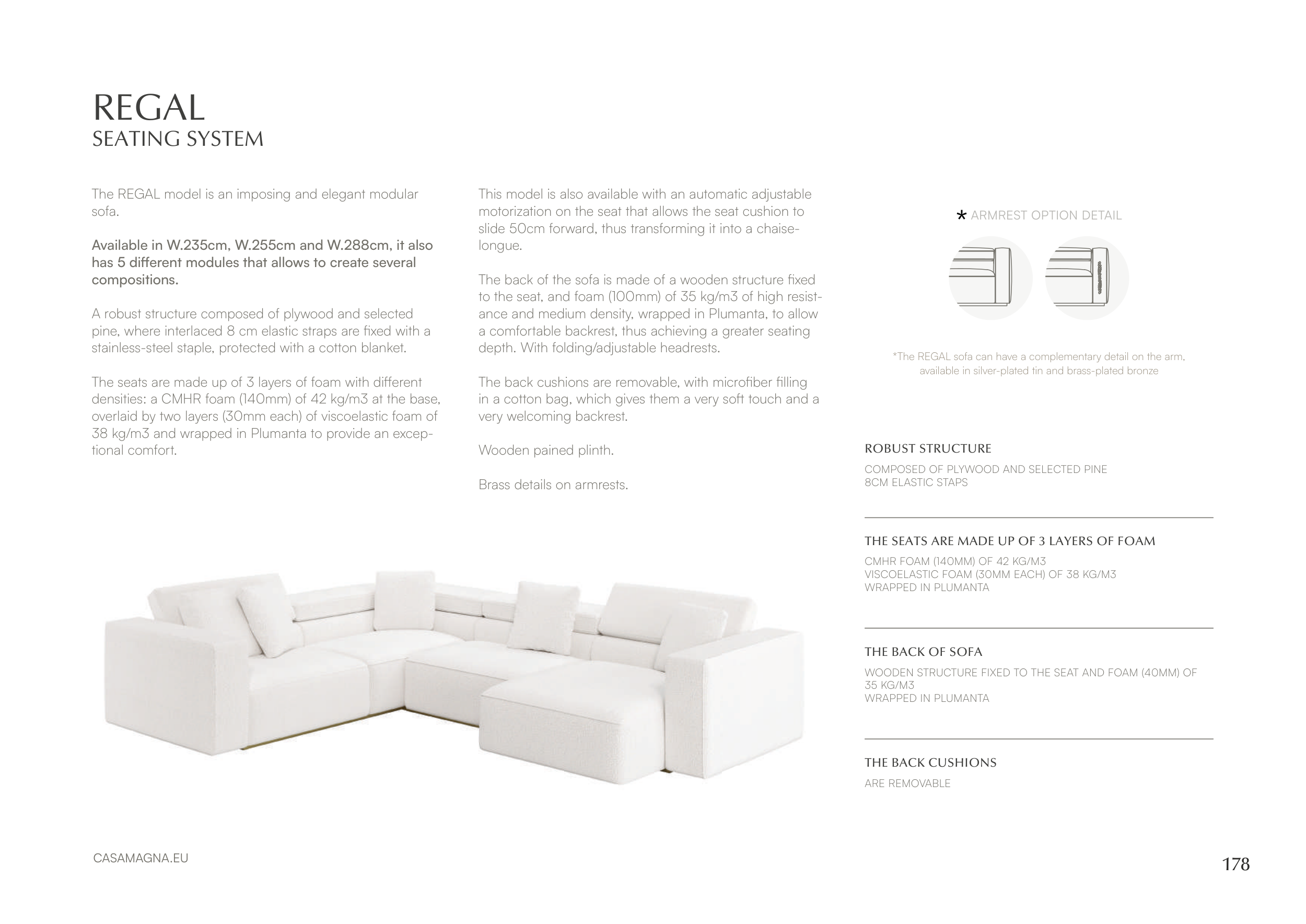 *The REGAL sofa can have a complementary detail on the arm,