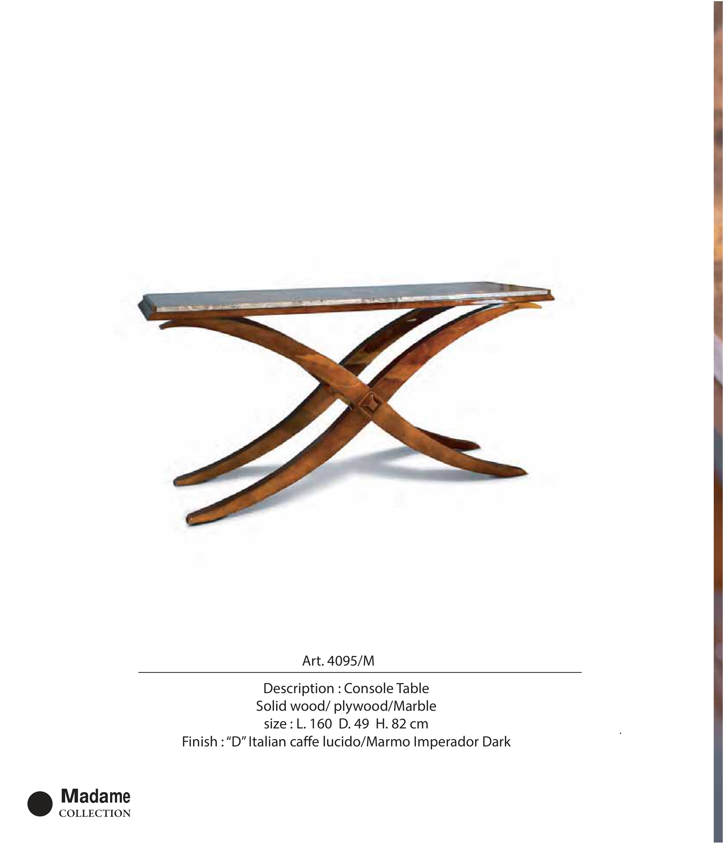 Finish : “D” Italian caffe lucido/Marmo Imperador Dark