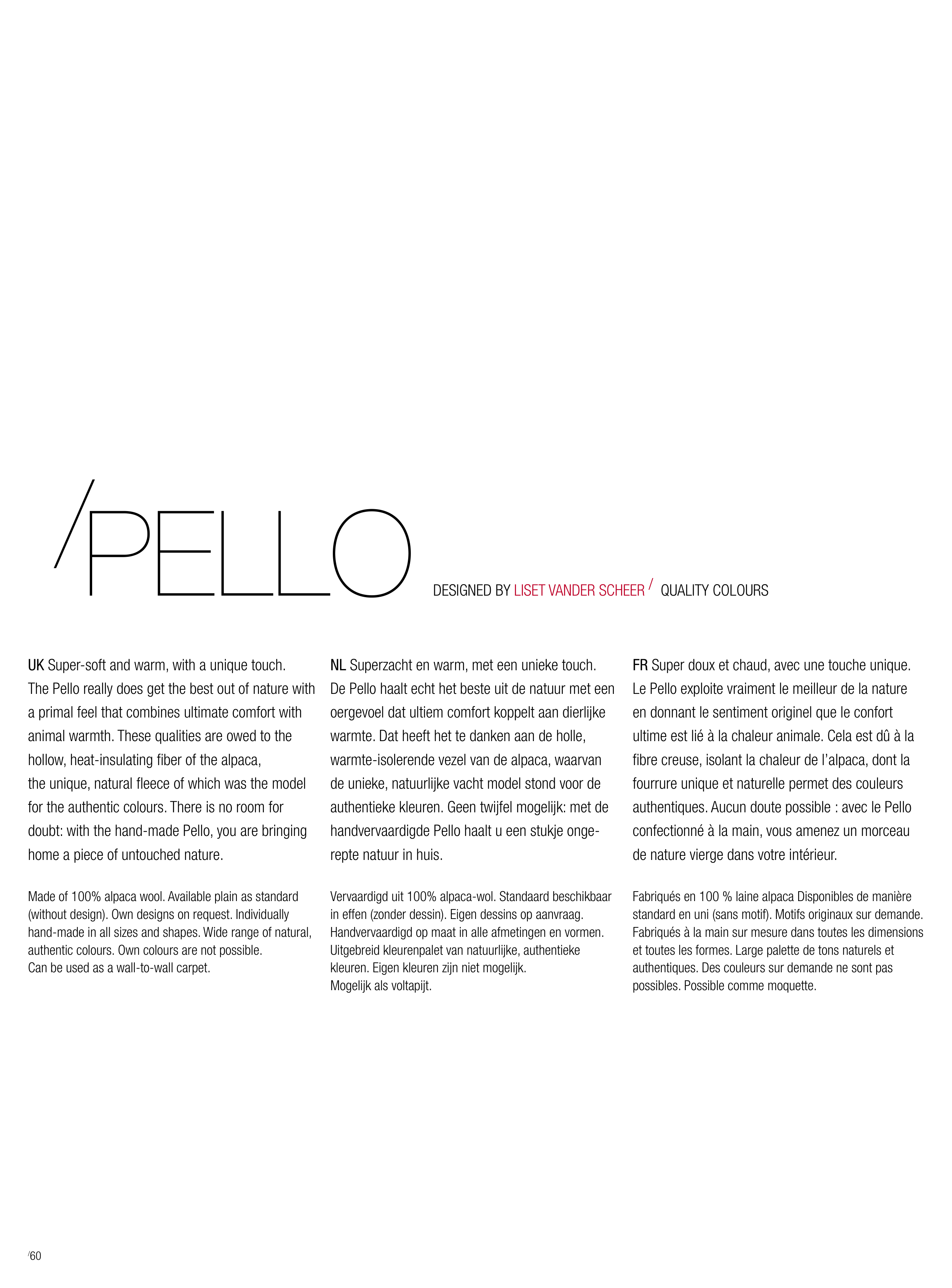 DESIGNED BY LISET VANDER SCHEER / QUALITY COLOURS