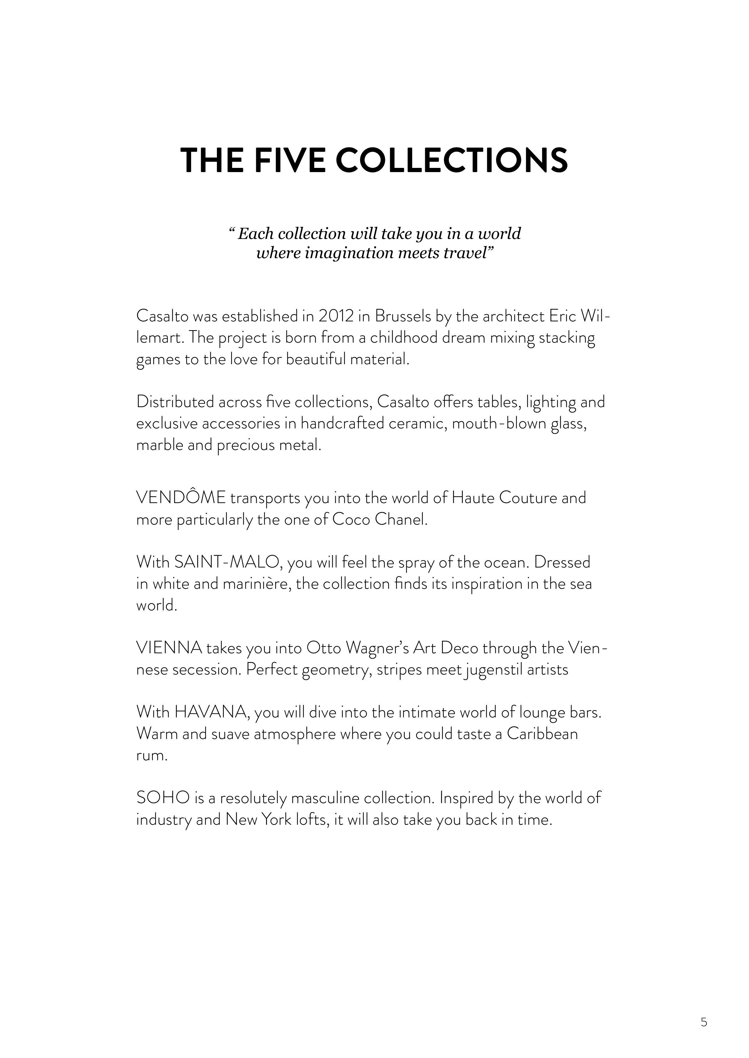“ Each collection will take you in a world
