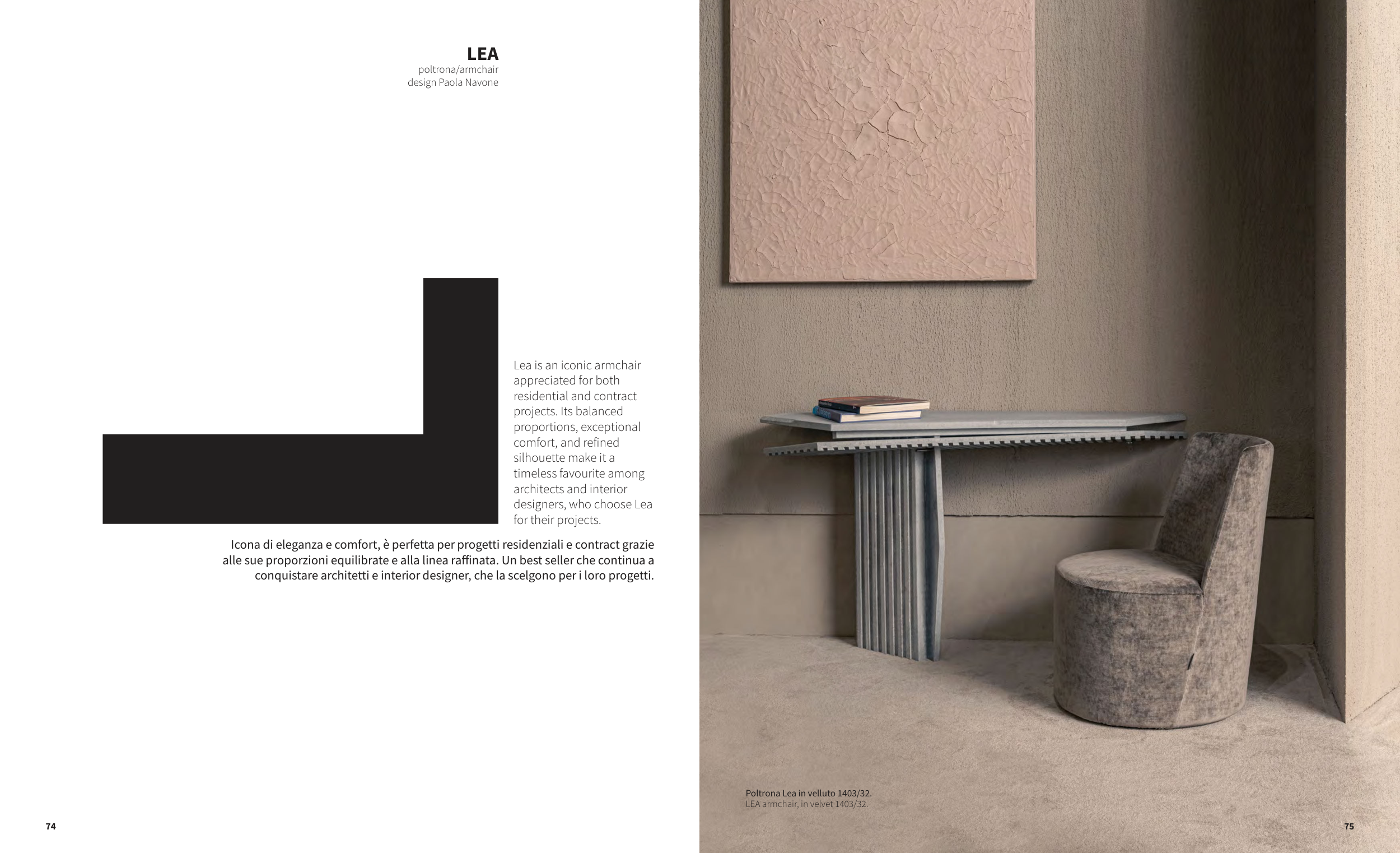 LEA armchair, in velvet 1403/32.