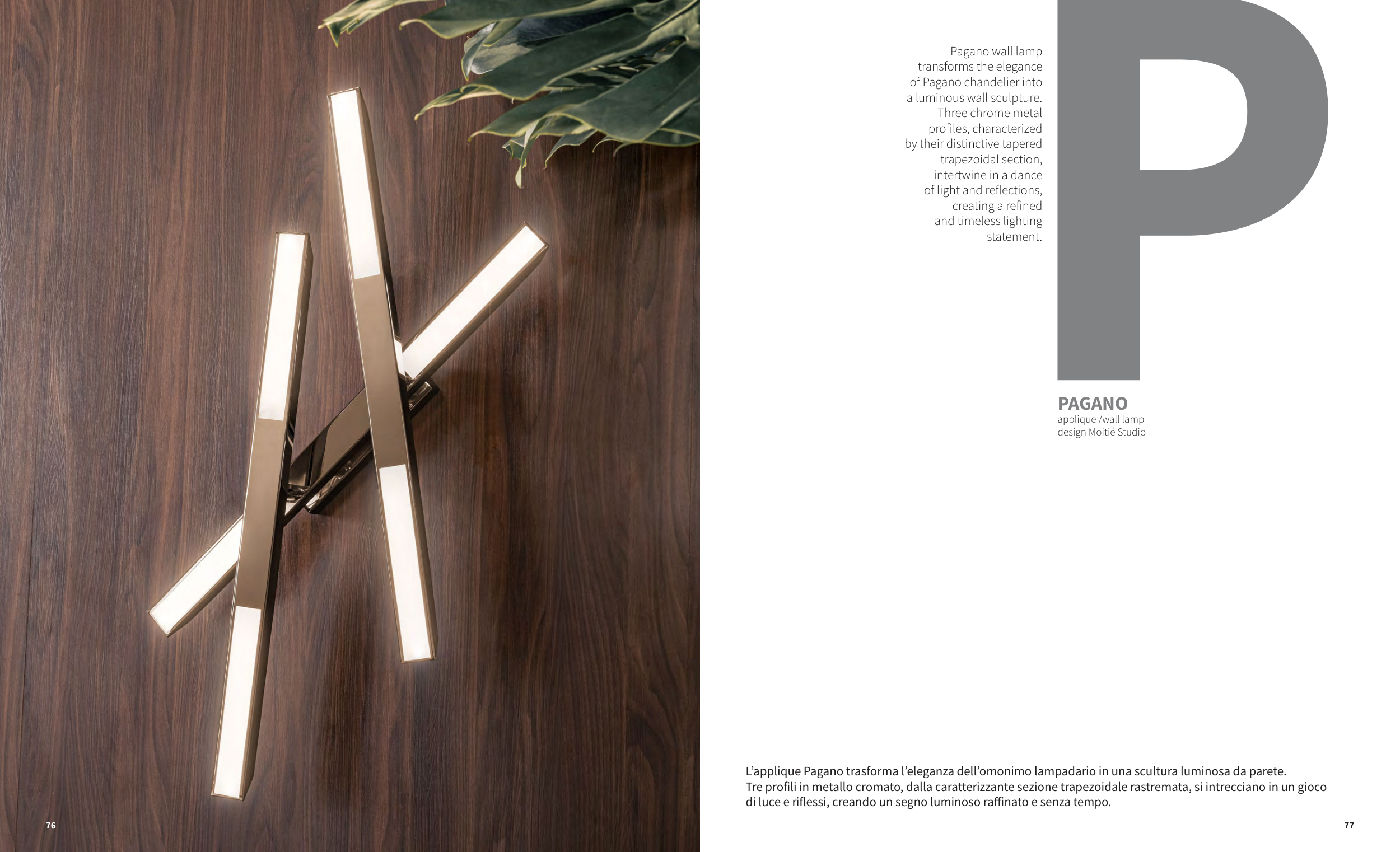 L’applique Pagano trasforma l’eleganza dell’omonimo lampadario in una scultura luminosa da parete.