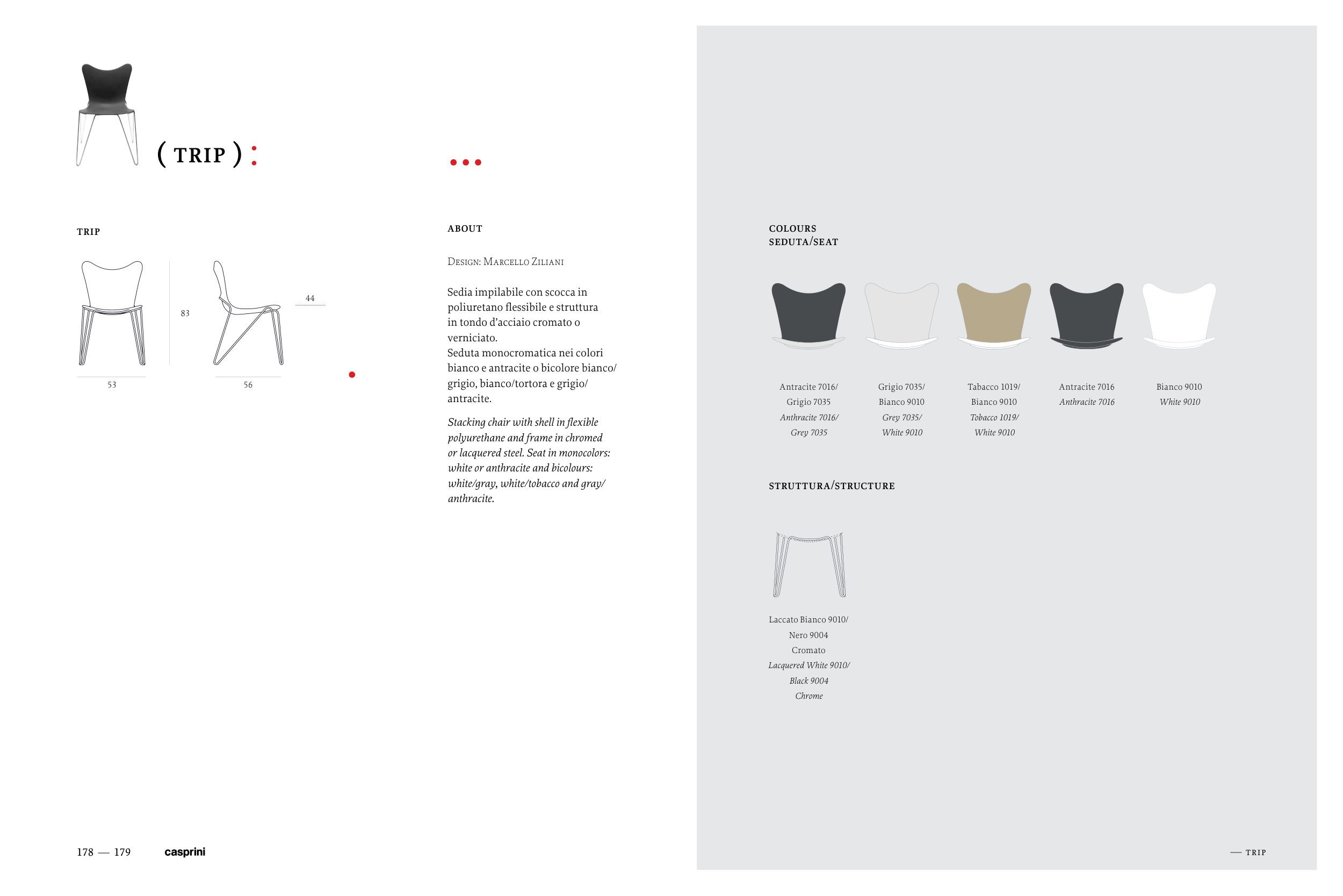 or lacquered steel. Seat in monocolors: